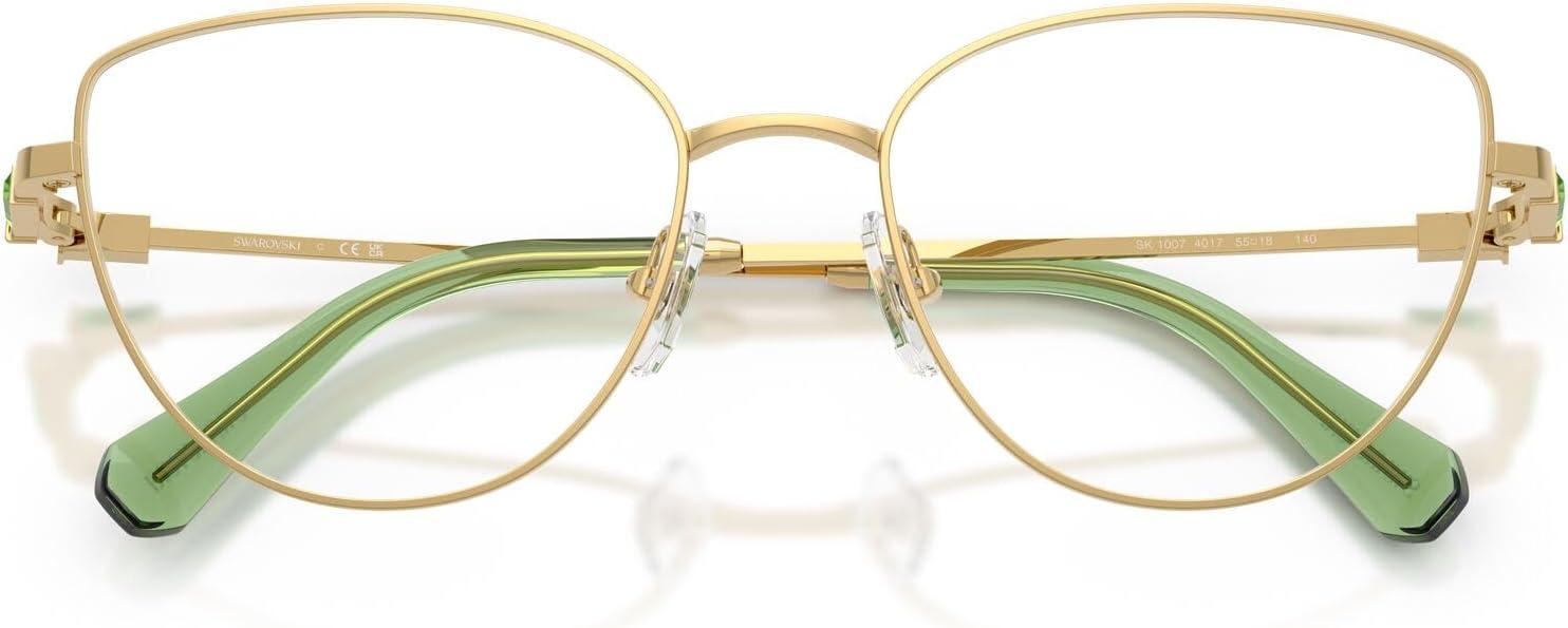Celebrating Swarovski’s artistry and craftsmanship, the Science of Facets displays a crystal playground and colorful wonderland of precision cuts. A pure and hypnotic focus on full cut crystal temple hinges, the meticulous faceting demonstrates the brands cutting expertise as a unique point of difference. Style-forward details coupled with a striking bold shape, SK1007 are a twist on a wardrobe classic. Available in a variety of classic metal finishes. Finished with signature Lucent Light hinges characterized by small colorful gemstones on each hinge. Swarovski eyeglass frames feature lenses that need to be replaced with prescription lenses so you can enjoy clear vision. Swarovski eyeglass frames sold by authorized sellers, like Amazon.com, are eligible for all manufacturer warranties and guarantees. Click on the Swarovski link above the product title to shop the entire Swarovski sunglass and eyeglass assortment.