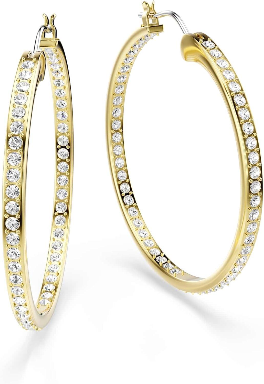 Swarovski Earrings Empower and elevate in equal measure with our radiant range of earrings. Our selection includes something for everyone, from classic styles to bold statement pieces. Choose from an array of styles, including chic stud earrings, statement drop earrings, playful hoop earrings, and edgy ear cuffs, all showcasing Swarovski's long heritage of master crystal craftsmanship. Whether pierced earrings or clip earrings, there's a pair to express every side of yourself in gold-tone, silver-tone, or rose gold-tone finished styles. Cleaning & Care Instructions: Keep your products stored in a safe space to avoid damage. We recommend polishing frequently with a lint-free cloth and always putting your jewelry on last. Keep away from liquids and sprays such as perfume to ensure that your jewelry maintains its brilliance.