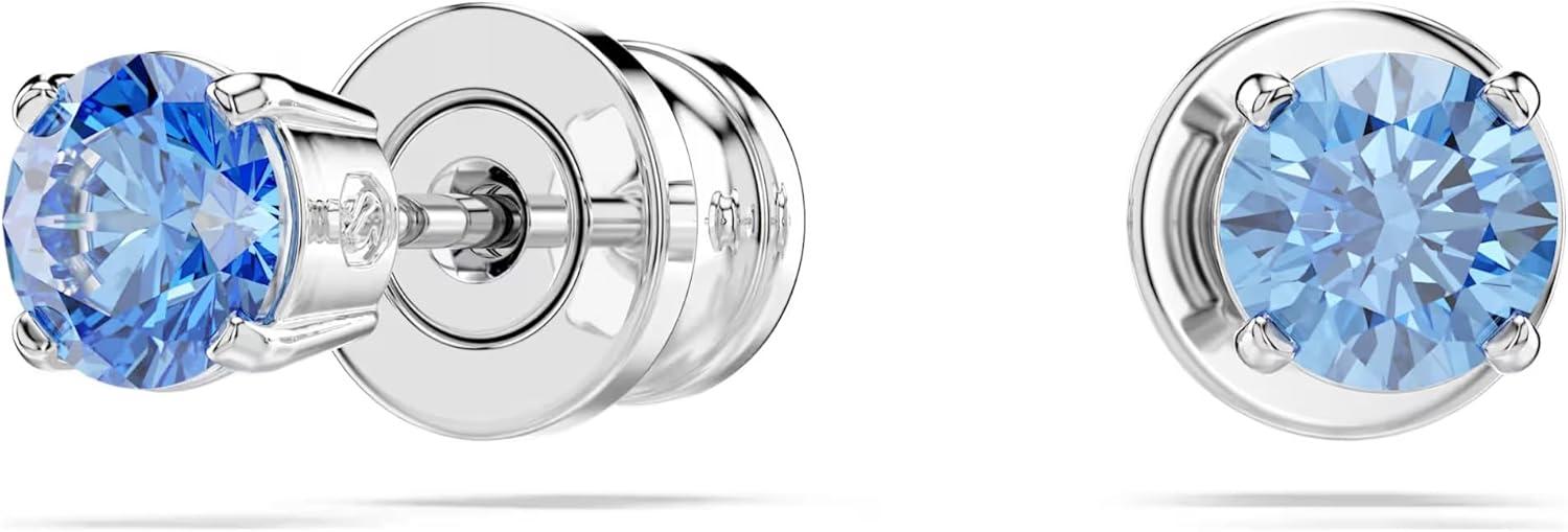 Swarovski Stilla Attract stud earrings, Round cut, Blue, Rhodium finish