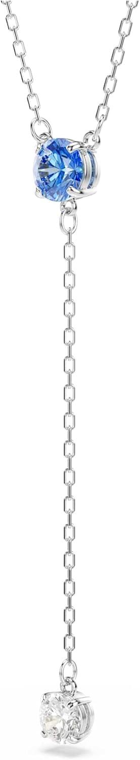 Swarovski Stilla Attract Y necklace, Round cut, Blue, Rhodium finish
