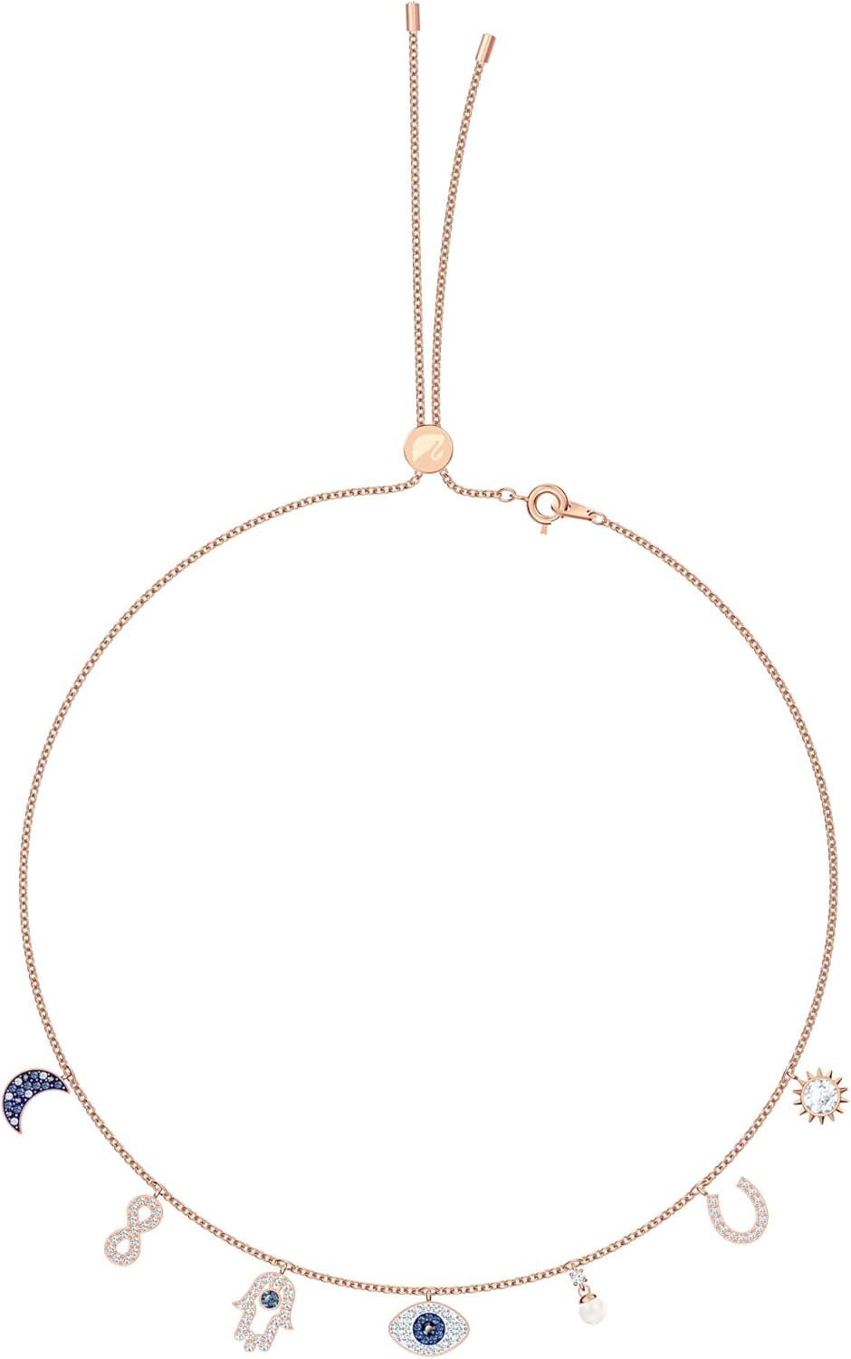 Swarovski Symbolica Collection Women’s Choker-Style Necklace, with Seven Blue and White Crystal Charms and Rose-Gold Tone Finished Chain