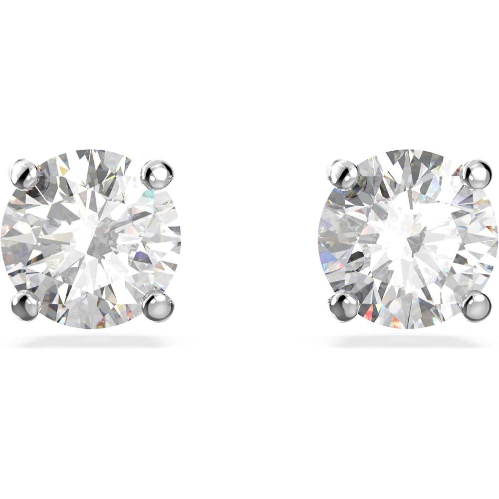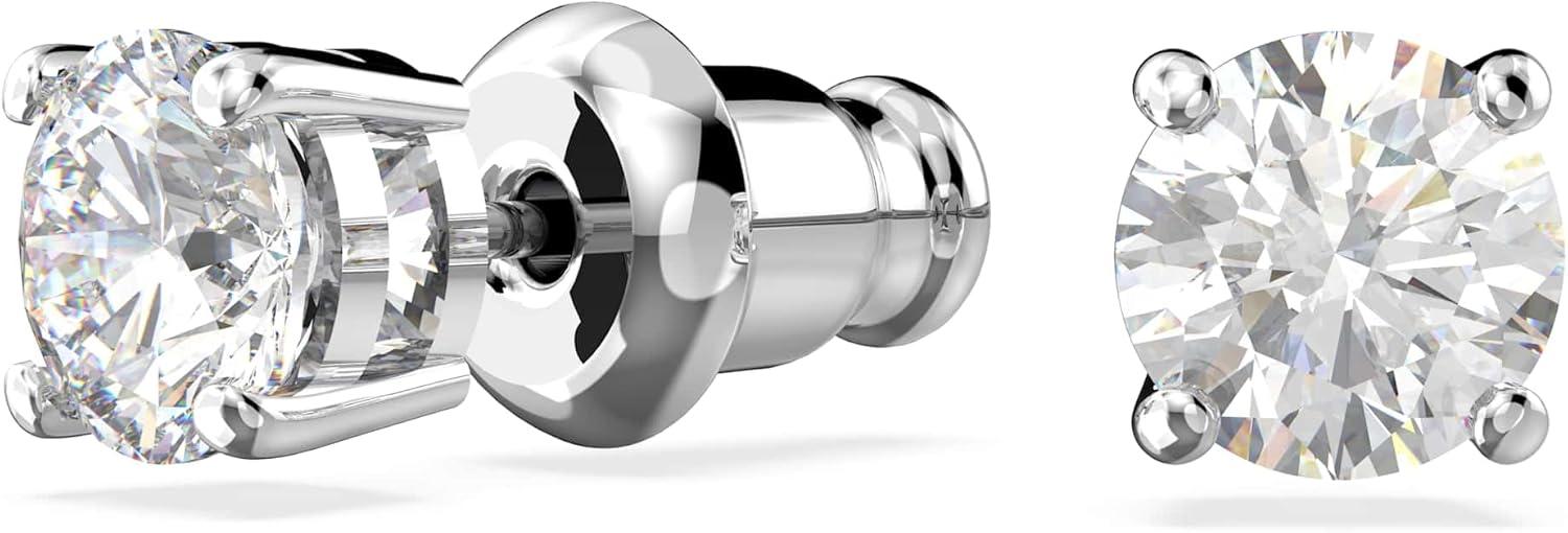 Swarovski Tennis Bracelet and Earring Jewelry Collection, Rhodium Finish, Clear Crystals(Round Stud Earrings)