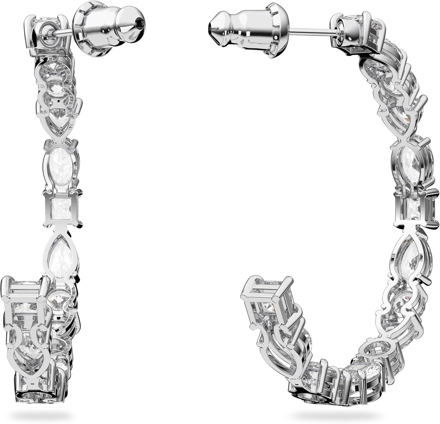 Swarovski Tennis Deluxe Women’s Hoop Pierced Earrings with White Crystal in a Rhodium Plated Setting