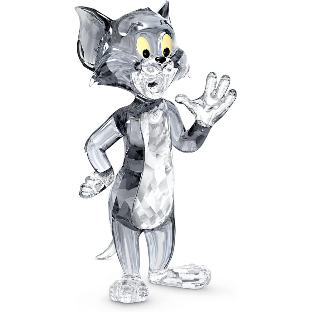 Items delivered: (1) Swarovski Tom & Jerry Figurine, Tom, collectible figurine for decor, with gray and clear Swarovski crystals, yellow and black accents, complete with Swarovski figurine box