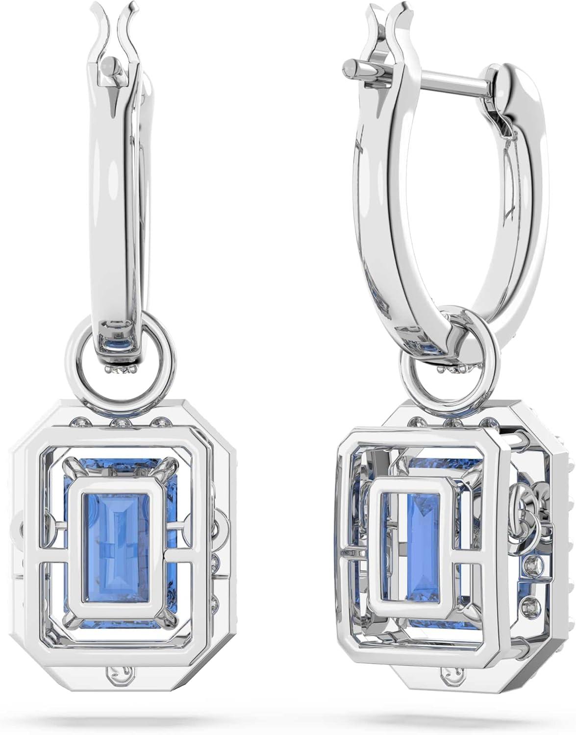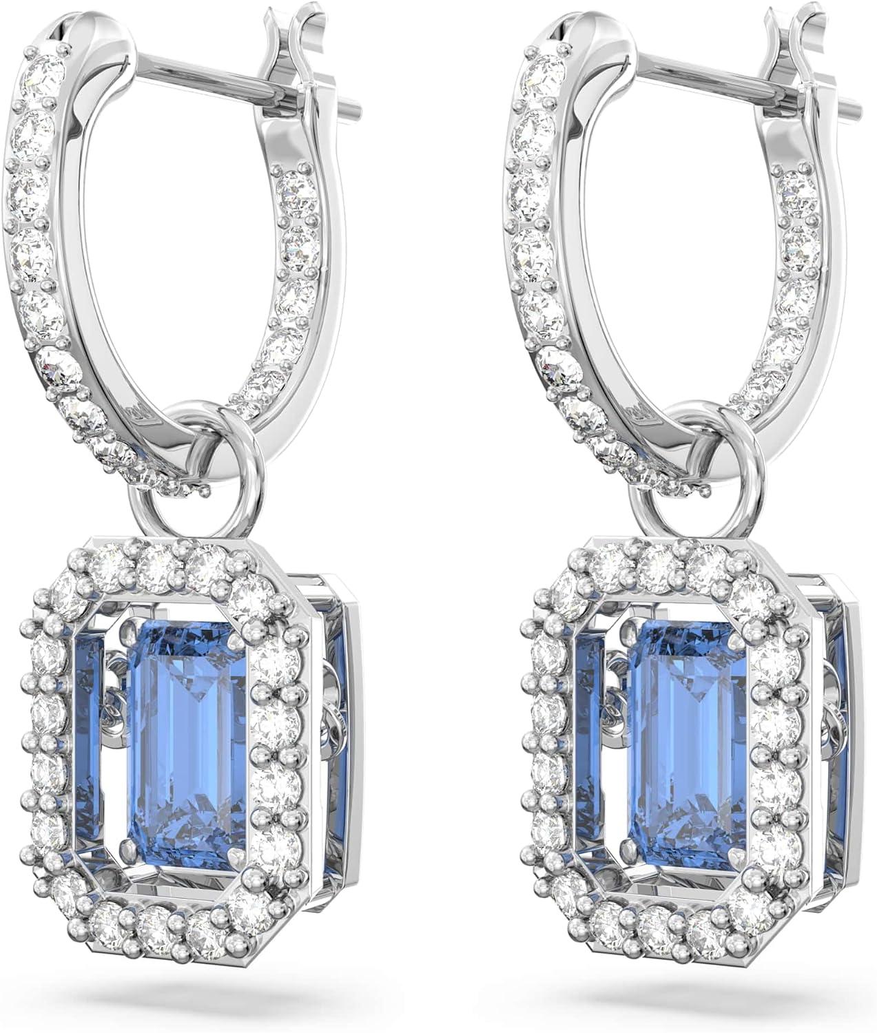 Swarovski Una Earrings, Octagon cut Swarovski Zirconia, Blue, Rhodium Finish