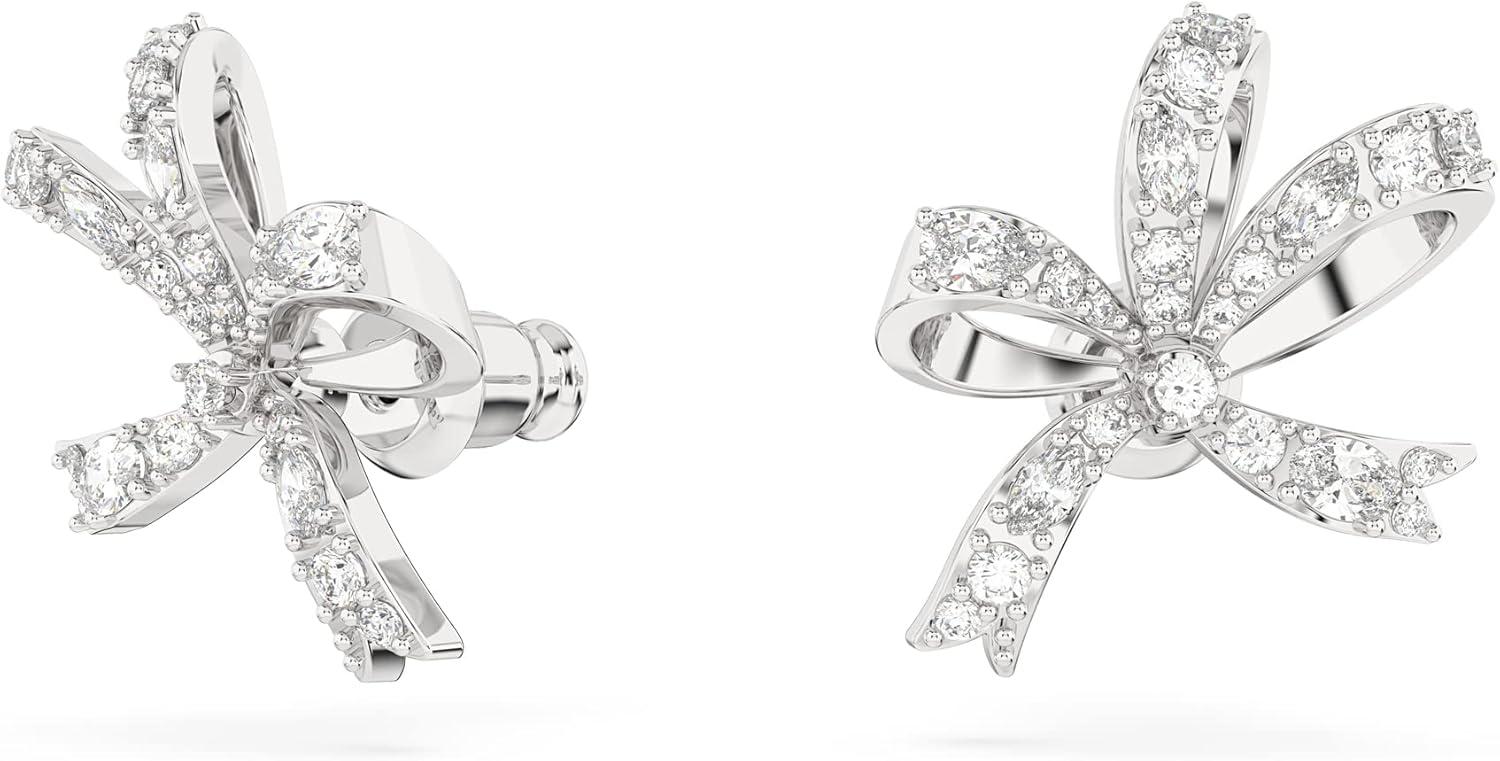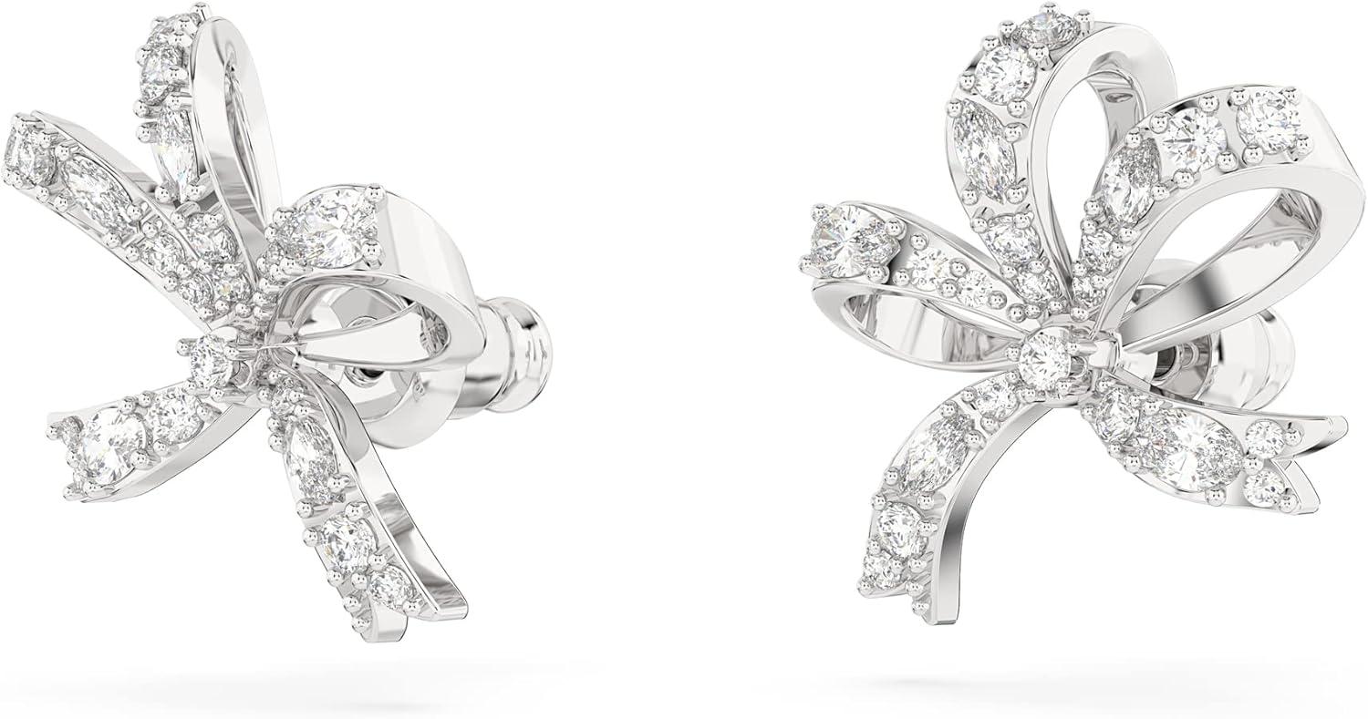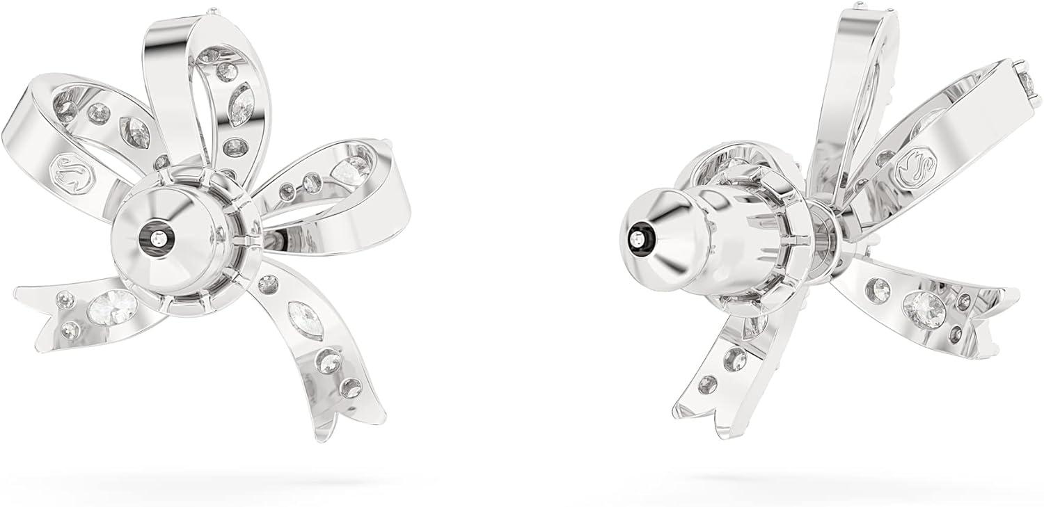 Swarovski Volta Necklace, Earrings, and Bracelets Jewelry Collection, Bow-Inspired Clear Crystals with Rhodium Finish(Stud Earrings)