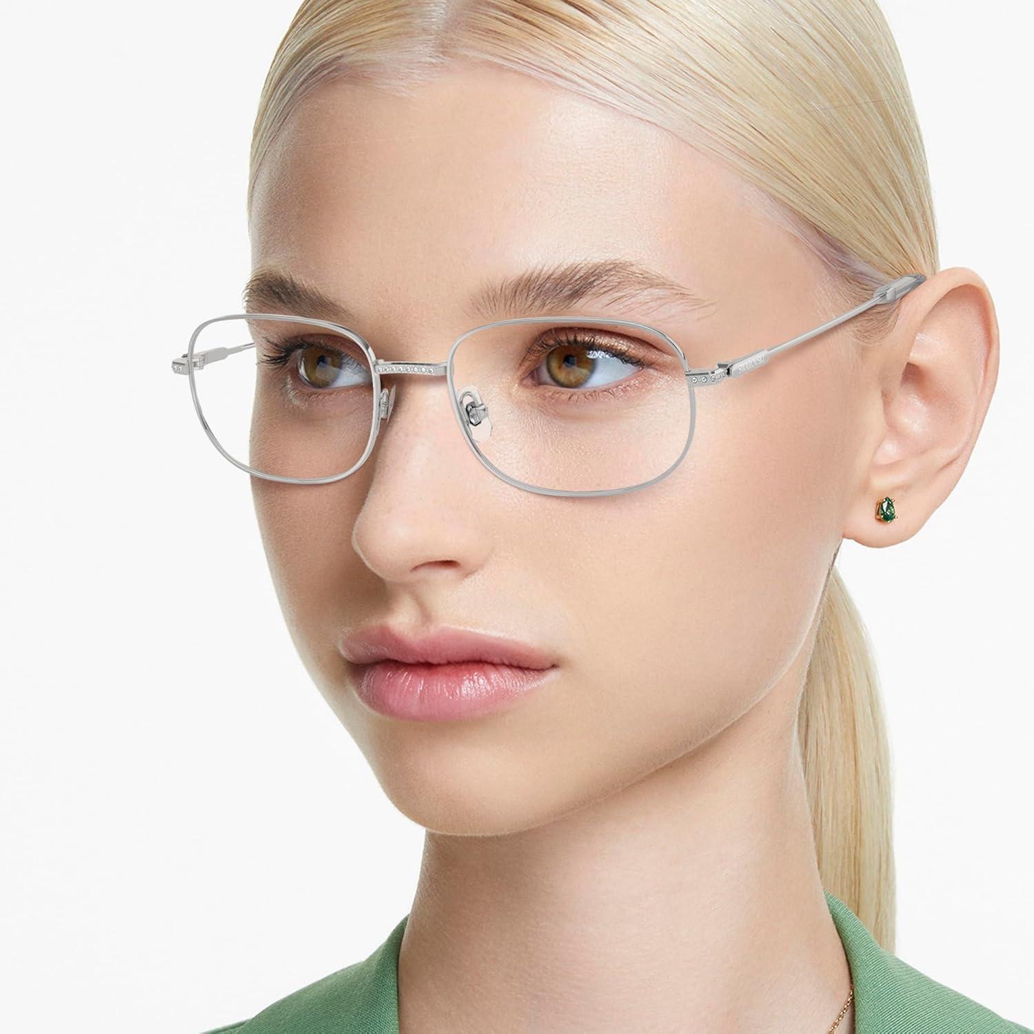 Swarovski Women’s Sk1005 Rectangular Prescription Eyewear Frames(Silver/Demo Lens)