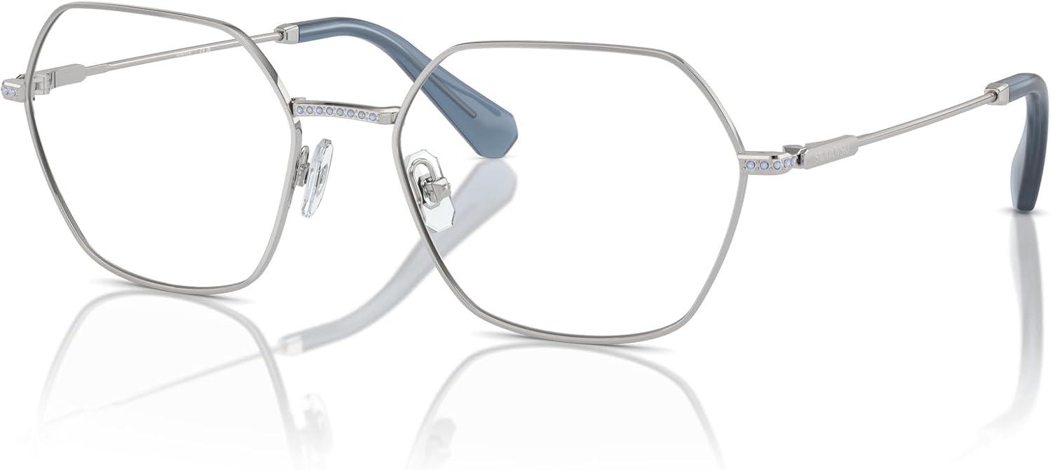 Swarovski womens Sk1011 Hexagonal Prescription Eyewear Frames(Silver/Demo Lens)