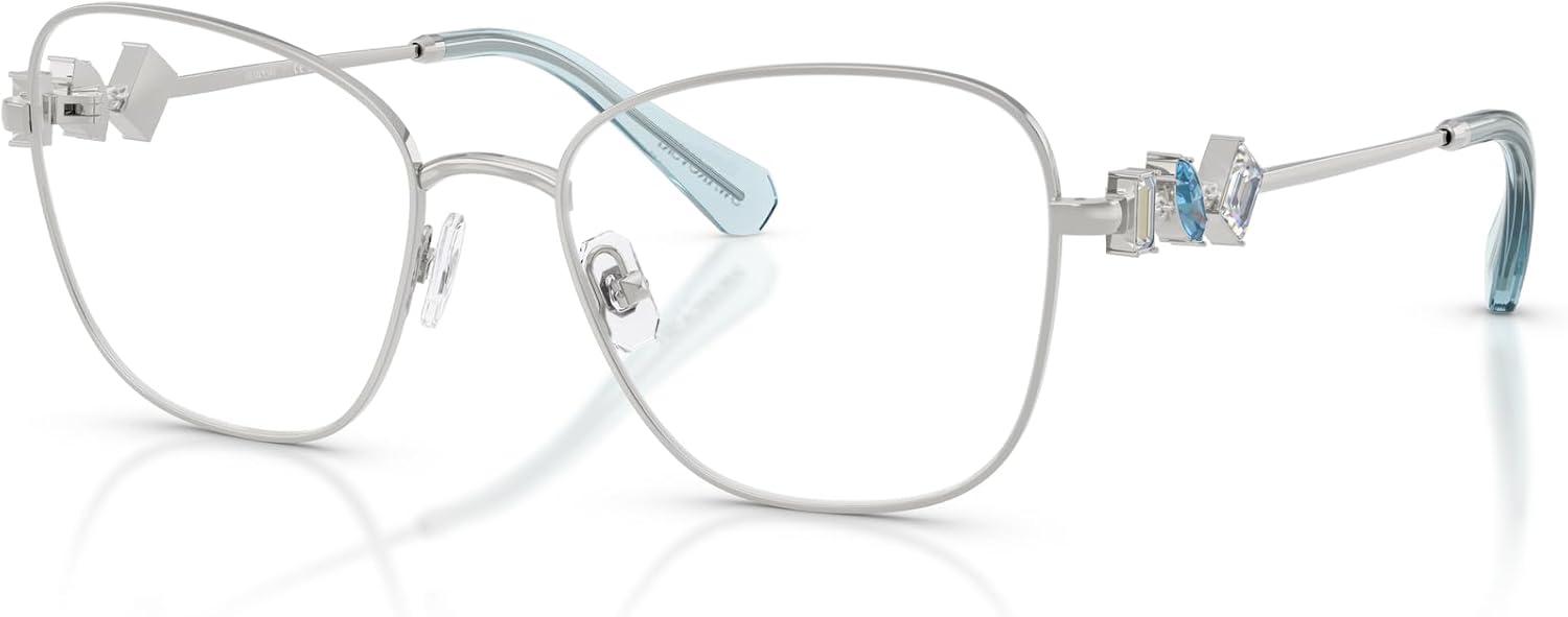 Swarovski Women’s Sk1025 Square Prescription Eyewear Frames(Silver/Demo Lens)