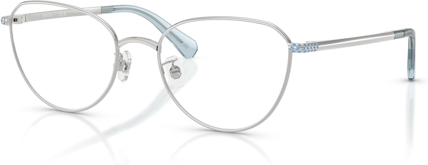 Swarovski womens Sk1029d Round Prescription Eyewear Frames(Silver/Demo Lens)
