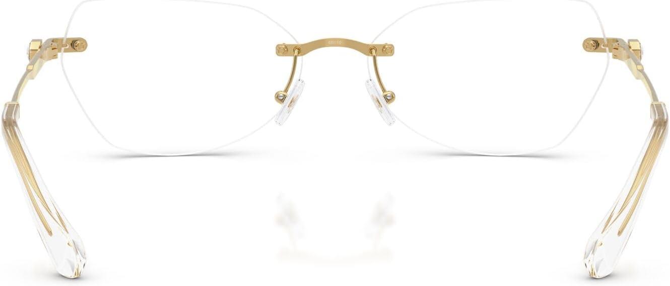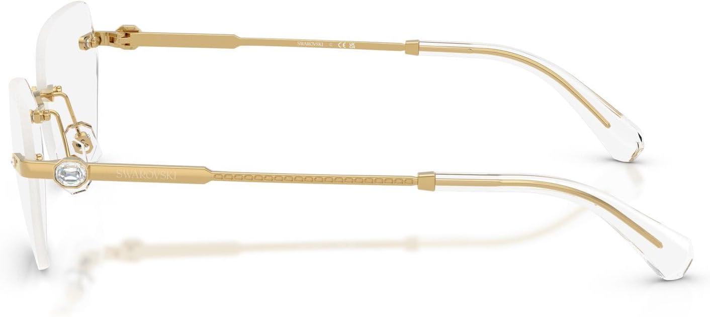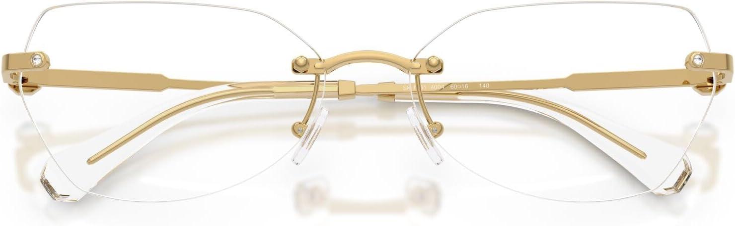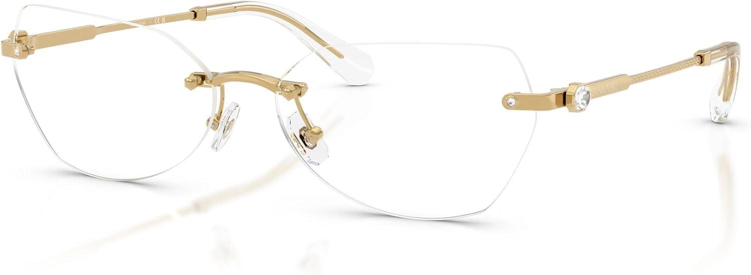The Swarovski SK1031 eyeglass frames feature an elegant hexagonal silhouette from the prestigious Millenia collection. Celebrating Swarovski's artistry and craftsmanship, this sophisticated design showcases the metal engraving technique featuring delicate small octagon shapes engraved into a section of the temples, adding a sophisticated detail to this rimless style. Small crystals are delicately placed on the pins at the front part, while a small octagonal crystal is positioned on each temple as a distinctive signifier, positioned just before a subtle logo to enhance the eyewear's refined look. Available in a selection of luxurious metallic finishes including silver, gold, dark gold, and rose gold that offer sophisticated and timeless styling options. The hexagonal shape provides modern geometric elegance while the rimless construction ensures exceptional lightness and all-day wearability with understated luxury. Perfect for the discerning individual who values refined design and sophisticated elegance, these frames represent the intersection of contemporary aesthetics and exquisite detailing with premium materials. These versatile frames transition effortlessly from sophisticated occasions to everyday moments. These prescription-ready frames are designed to be fitted with your custom prescription lenses for clear vision. Each pair comes with a protective case and cleaning cloth to preserve your frames and maintain their pristine appearance. Swarovski eyeglass frames sold by authorized sellers, like Amazon.com, are eligible for all manufacturer warranties and guarantees.