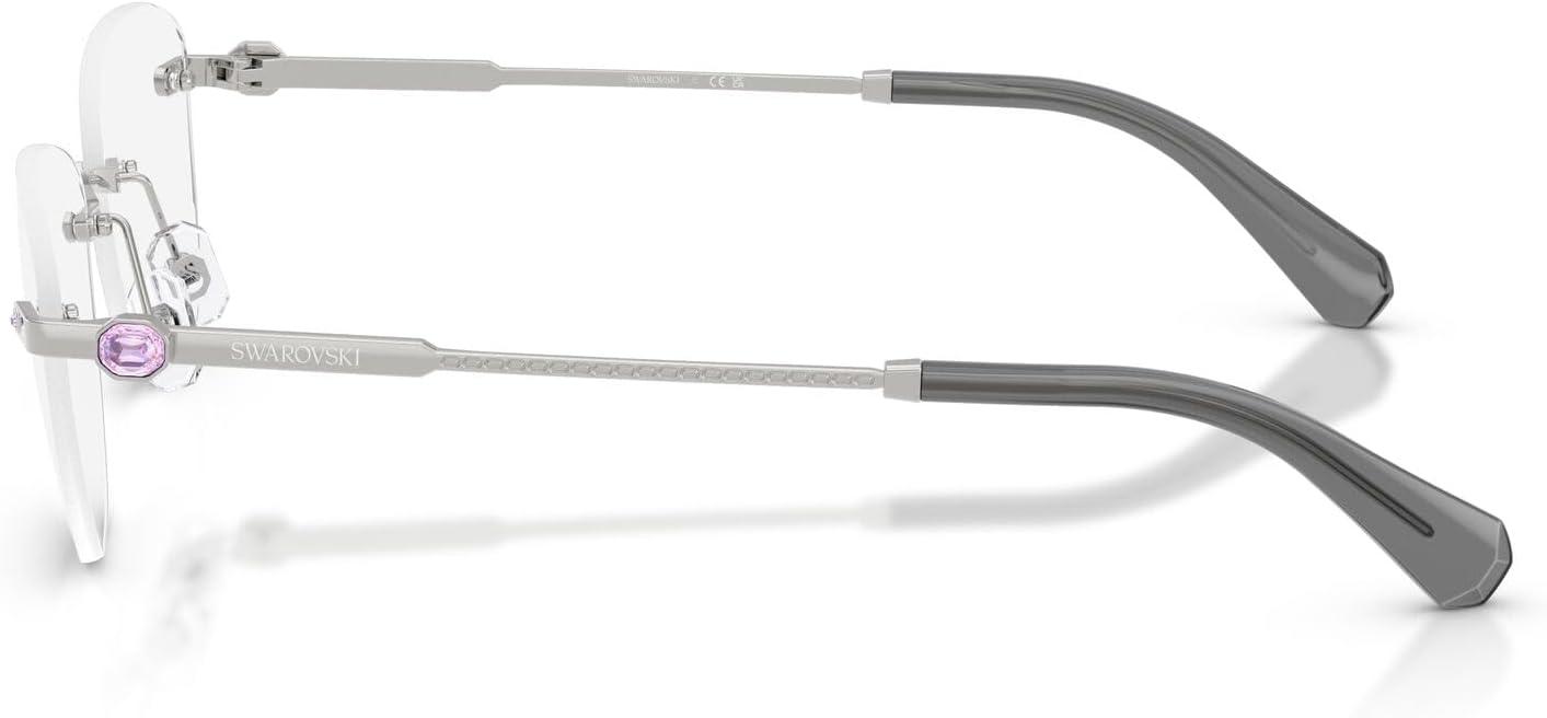 The Swarovski SK1035D eyeglass frames feature a graceful oval silhouette from the prestigious Millenia collection. Celebrating Swarovski's artistry and craftsmanship, this elegant design showcases the metal engraving technique featuring delicate small octagon shapes engraved into a section of the temples, adding a refined detail to this rimless style. Small crystals are delicately placed on the pins at the front part, while a small octagonal crystal is positioned on each temple as a distinctive signifier, positioned just before a subtle logo to enhance the eyewear's refined look. Available in a selection of luxurious metallic finishes including silver, pale gold, dark gold, and rose gold that offer elegant and timeless styling options. The oval shape provides classic femininity and flattering proportions while the rimless construction ensures exceptional lightness and all-day wearability with distinctive luxury. Perfect for the discerning individual who values refined design and elegant sophistication, these frames represent the intersection of contemporary aesthetics and exquisite detailing with premium materials. These versatile frames transition effortlessly from sophisticated occasions to everyday moments. These prescription-ready frames are designed to be fitted with your custom prescription lenses for clear vision. Each pair comes with a protective case and cleaning cloth to preserve your frames and maintain their pristine appearance. Swarovski eyeglass frames sold by authorized sellers, like Amazon.com, are eligible for all manufacturer warranties and guarantees.