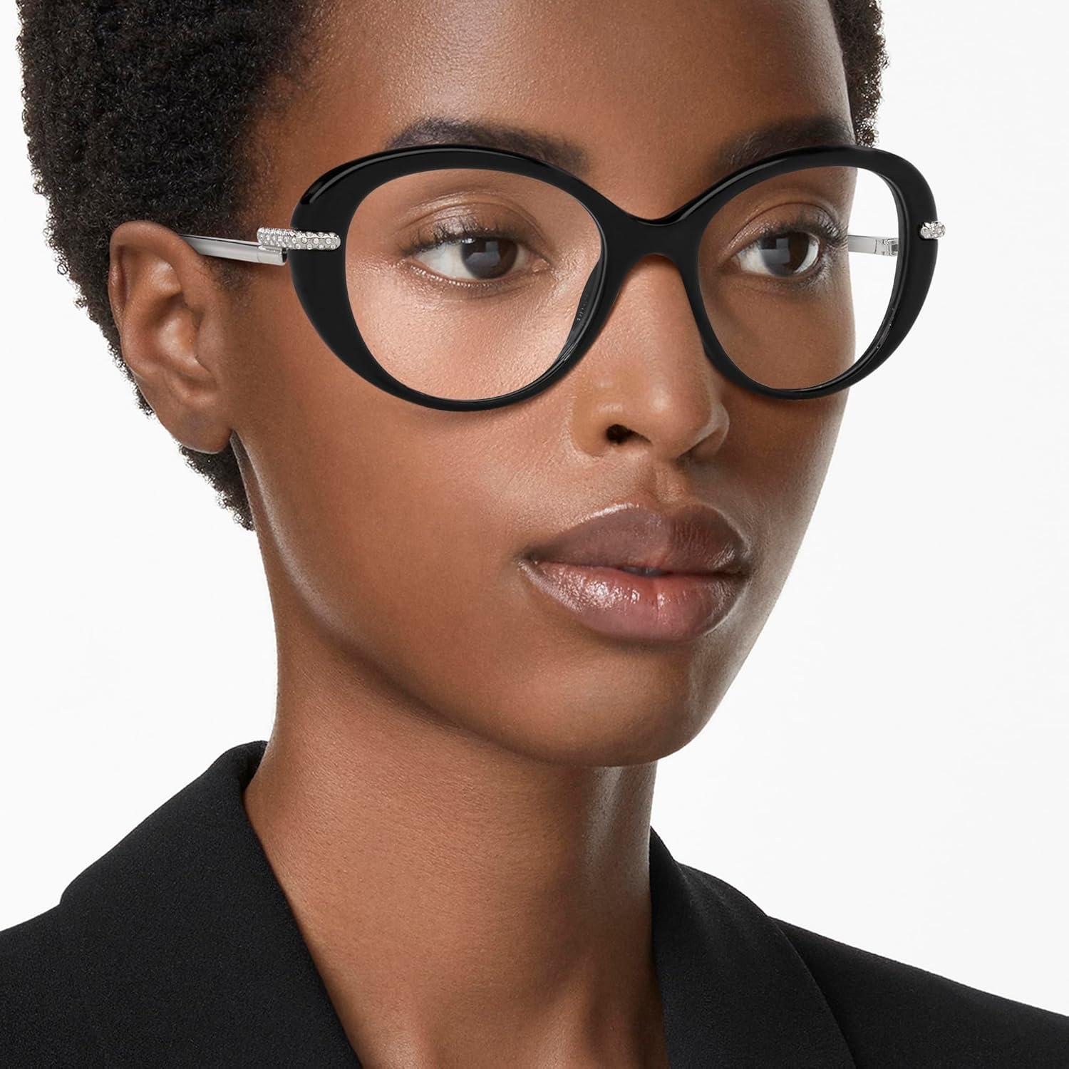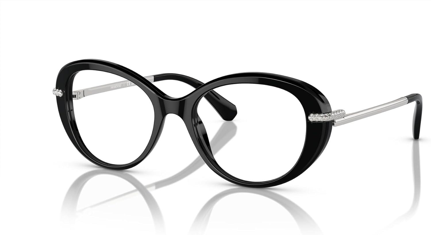 Swarovski womens Sk2001 Oval Prescription Eyewear Frames(Black/Silver/Demo Lens)