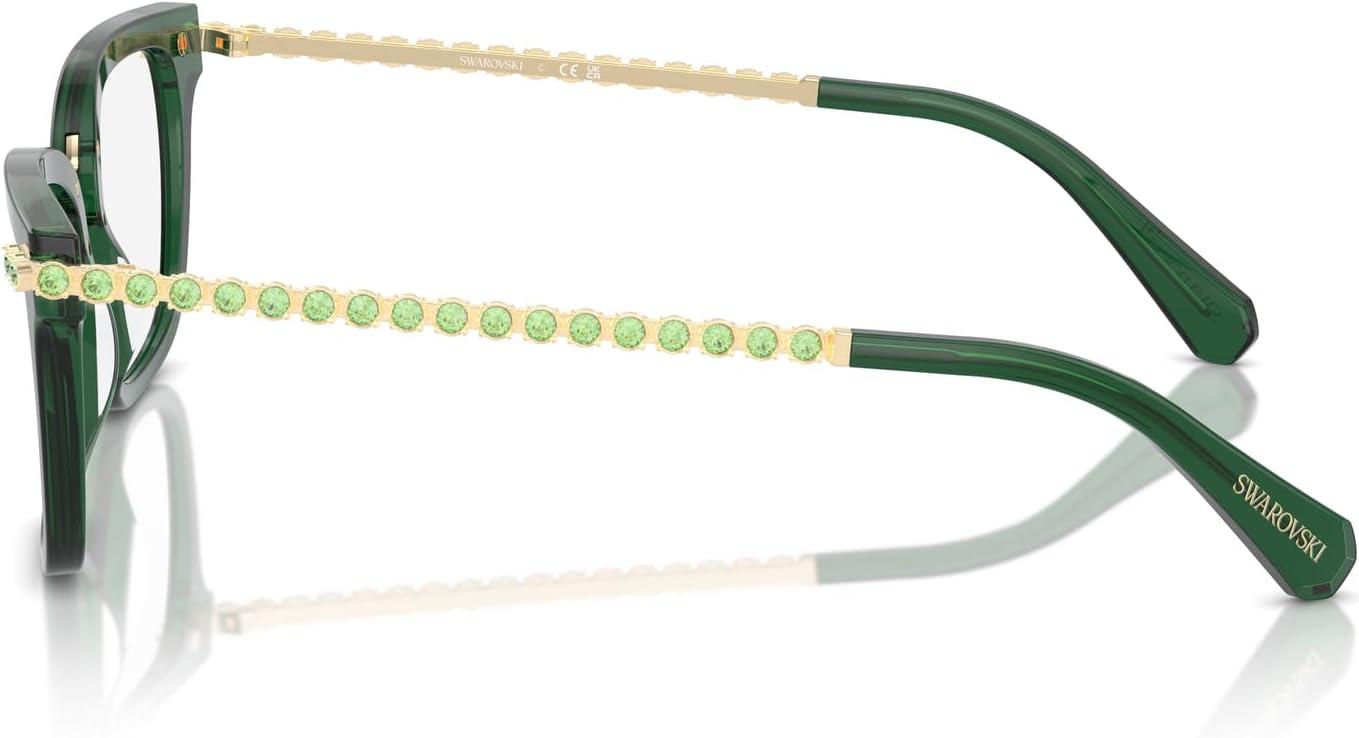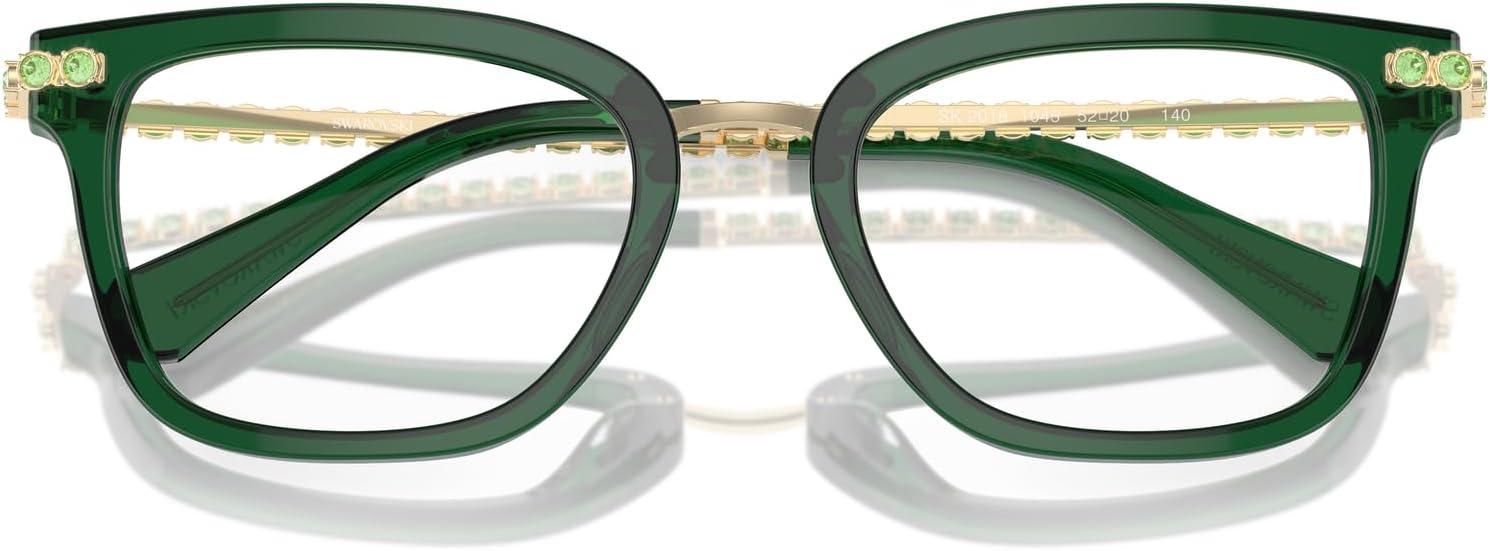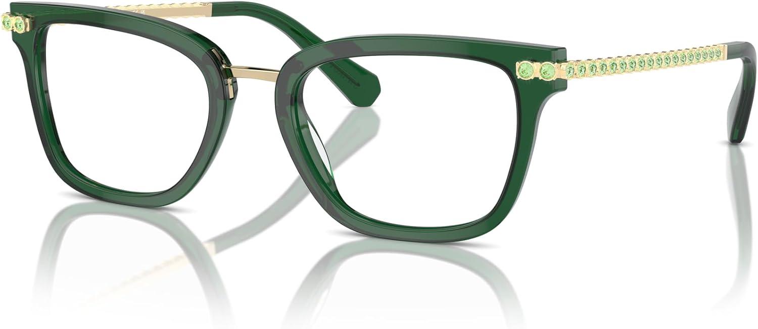 Swarovski Women’s Sk2018 Square Prescription Eyewear Frames(Dark Green Transparent/Demo Lens)