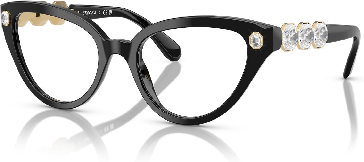 Swarovski womens Sk2028 Cat Eye Prescription Eyewear Frames(Black/Demo Lens)