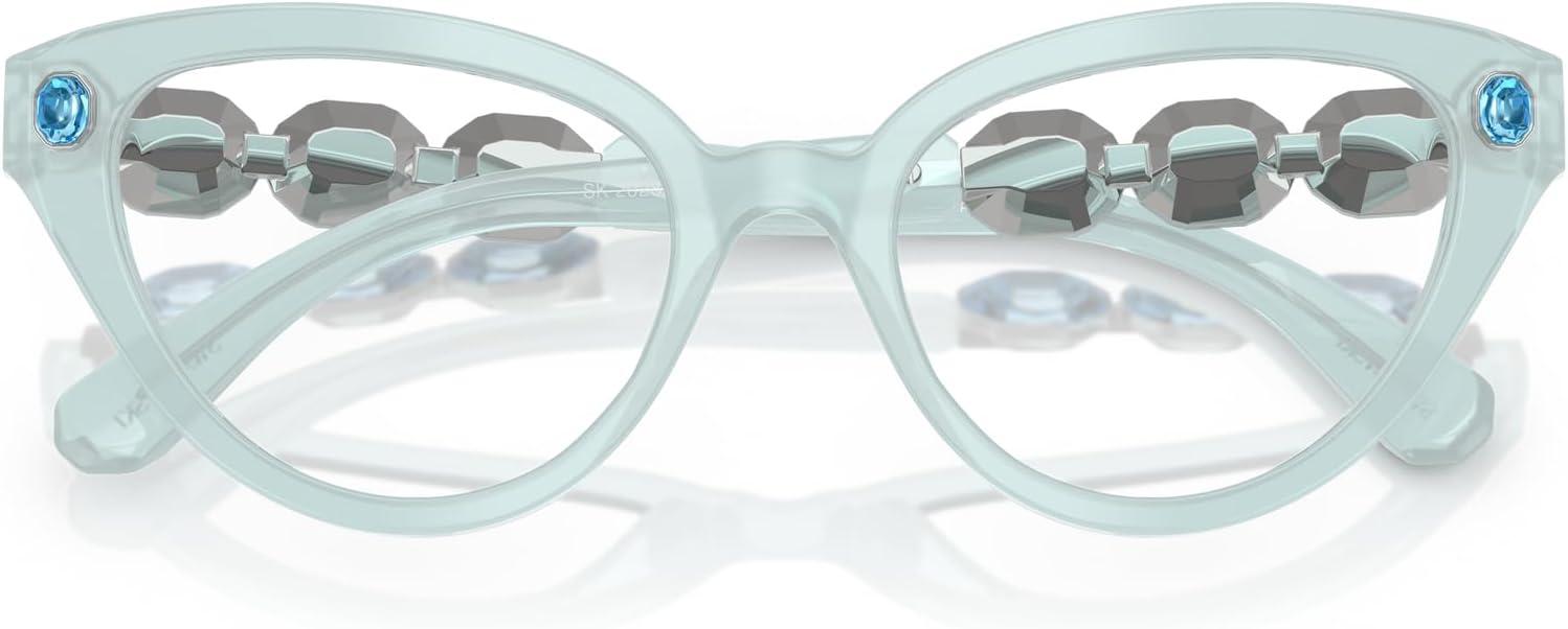 Swarovski womens Sk2028f Low Bridge Fit Cat Eye Prescription Eyewear Frames(Milky Light Blue/Demo Lens)