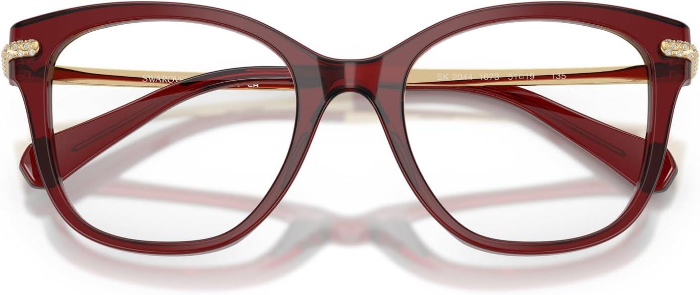 Swarovski Women’s Sk2044 Square Prescription Eyewear Frames(Transparent Burgundy/Demo Lens)