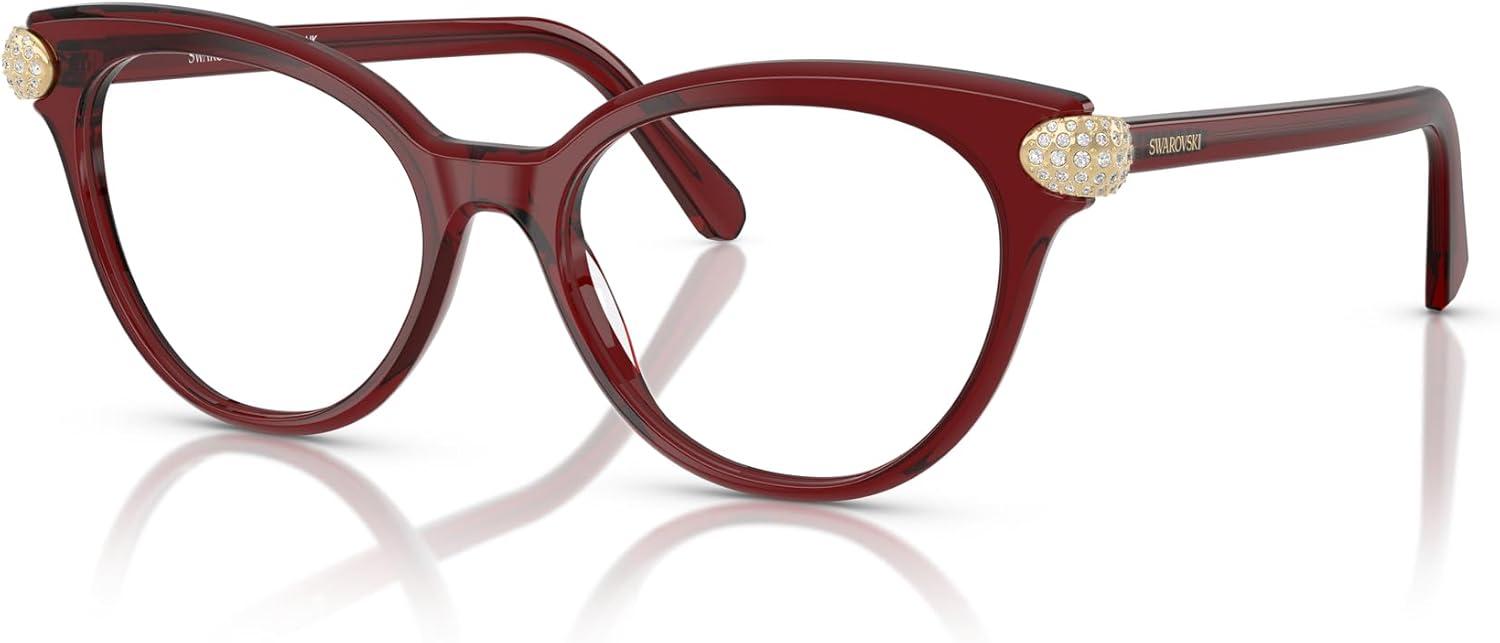 Swarovski Women’s Sk2046 Round Prescription Eyewear Frames(Transparent Burgundy/Demo Lens)