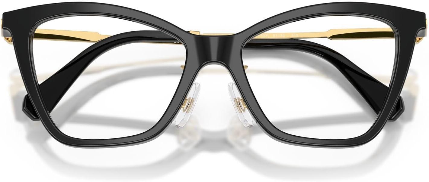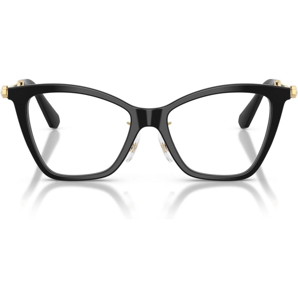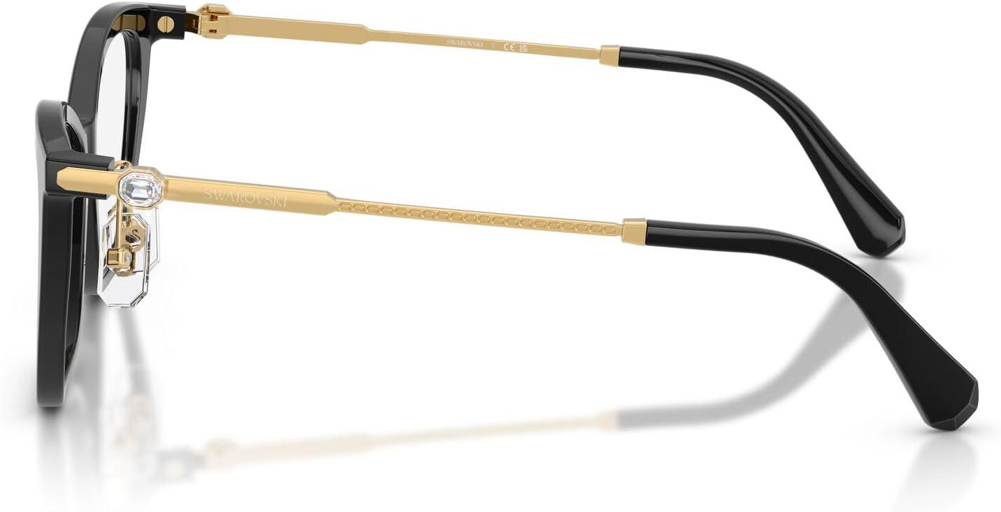 The Swarovski SK2051F eyeglass frames feature a bold cat eye silhouette from the prestigious Millenia collection. Celebrating Swarovski's artistry and craftsmanship, this captivating design showcases the metal engraving technique featuring delicate small octagon shapes engraved into a section of the temples, adding a refined detail to the design. This style features a refined acetate front paired with sleek metal temples, while a small octagonal crystal is placed on each temple as a distinctive signifier, positioned just before a subtle logo to enhance the eyewear's polished appearance, perfect for adding a touch of sparkle to any look. Available in a distinctive array of cat eye frames including classic black, rich havana, and vibrant transparent green that offer striking and versatile styling choices. The cat eye shape provides dramatic feminine sophistication and flattering proportions while the Low Bridge Fit construction is specifically designed for those with high cheekbones and lower nose bridges, ensuring exceptional comfort and all-day wearability with distinctive luxury. Perfect for the discerning individual who values bold design and glamorous elegance, these frames represent the intersection of contemporary aesthetics and exquisite detailing with premium materials. These versatile frames transition effortlessly from sophisticated occasions to everyday moments. These prescription-ready frames are designed to be fitted with your custom prescription lenses for clear vision. Each pair comes with a protective case and cleaning cloth to preserve your frames and maintain their pristine appearance. Swarovski eyeglass frames sold by authorized sellers, like Amazon.com, are eligible for all manufacturer warranties and guarantees.