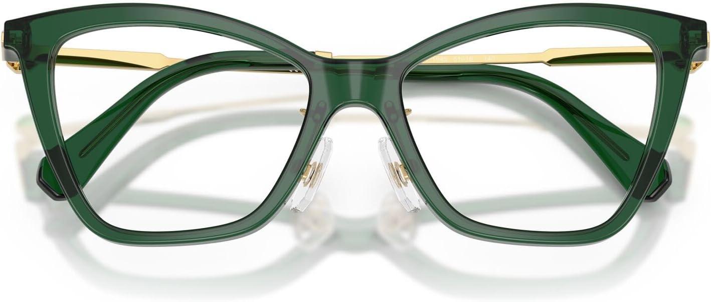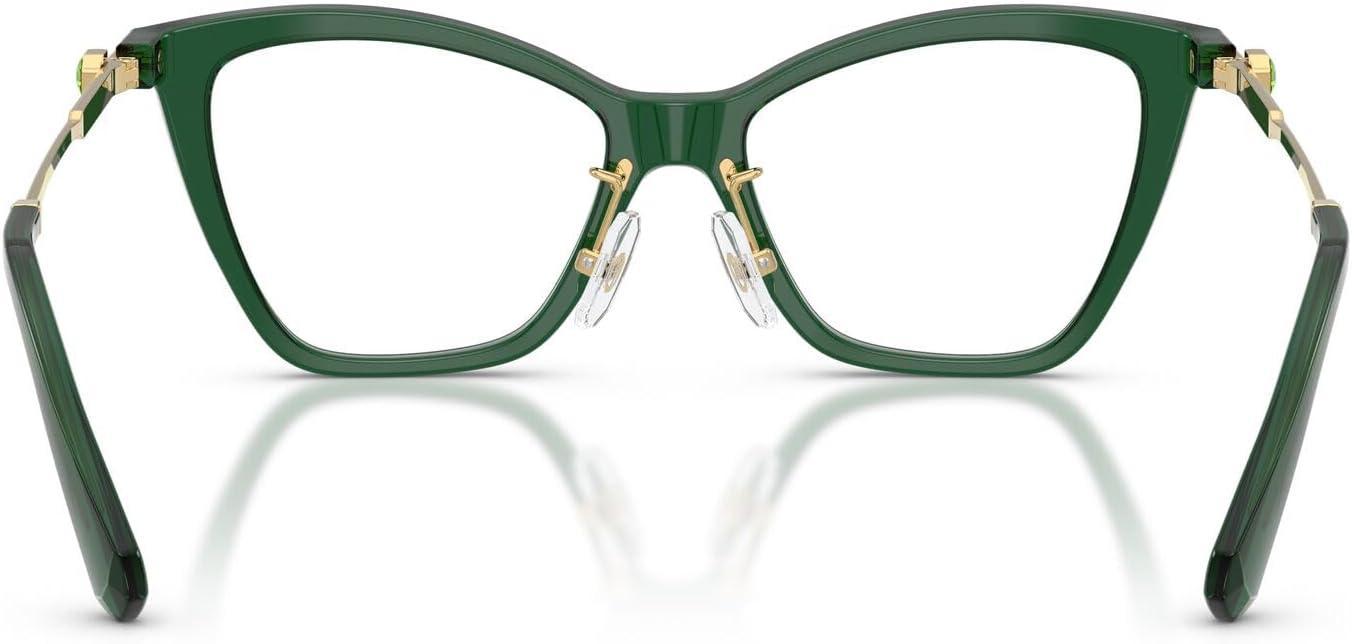 Swarovski Women’s Sk2051f Low Bridge Fit Cat Eye Prescription Eyewear Frames(Transparent Green/Demo Lens)