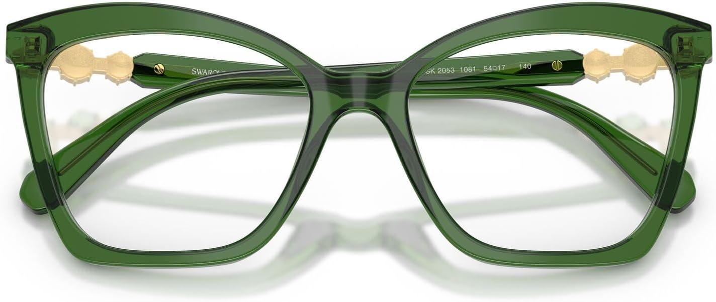 The Swarovski SK2053 eyeglass frames feature an alluring cat eye silhouette from the celestial Constella collection. Celebrating Swarovski's artistry and craftsmanship, this captivating design is inspired by Swarovski jewelry, embodying the wonder of the galaxy with acetate styles enhanced with three delicate crystals on each temple, adding a luminous touch that creates distinctive luxury appeal, perfect for adding a touch of sparkle to any outfit. Available in a versatile array of cat eye frames including classic havana and black, contemporary transparent options, milky green, and transparent brown that offer diverse and elegant styling choices. The cat eye shape provides dramatic feminine sophistication and flattering proportions while the crystal-enhanced construction ensures exceptional glamour and all-day wearability with distinctive luxury. Perfect for the discerning individual who values celestial-inspired design and sparkling elegance, these frames represent the intersection of cosmic beauty and exquisite detailing with premium materials. These versatile frames transition effortlessly from sophisticated occasions to everyday moments. These prescription-ready frames are designed to be fitted with your custom prescription lenses for clear vision. Each pair comes with a protective case and cleaning cloth to preserve your frames and maintain their pristine appearance. Swarovski eyeglass frames sold by authorized sellers, like Amazon.com, are eligible for all manufacturer warranties and guarantees.