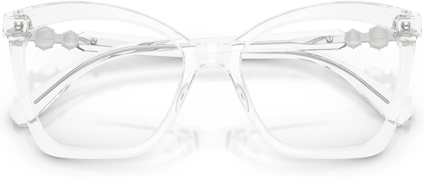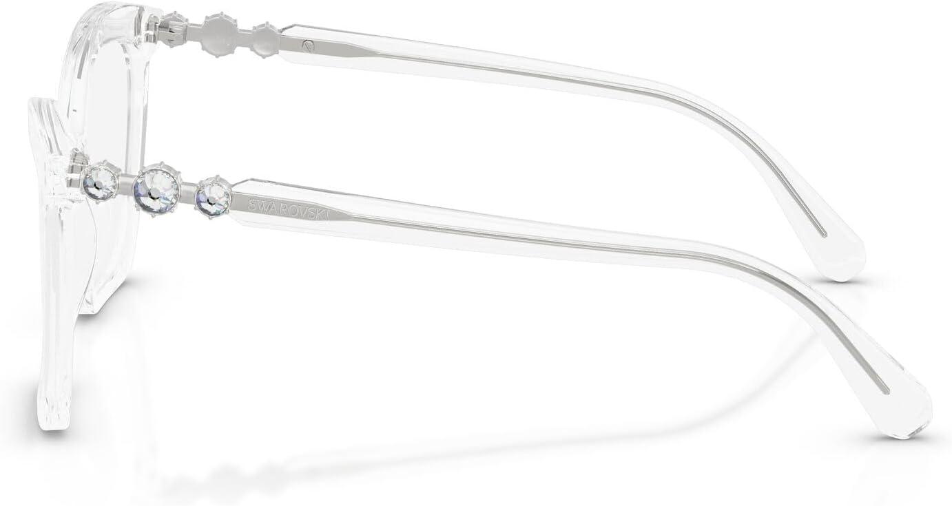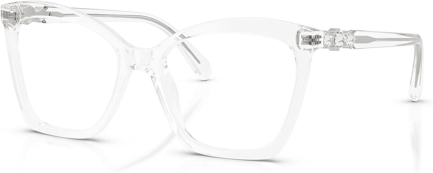 The Swarovski SK2053 eyeglass frames feature an alluring cat eye silhouette from the celestial Constella collection. Celebrating Swarovski's artistry and craftsmanship, this captivating design is inspired by Swarovski jewelry, embodying the wonder of the galaxy with acetate styles enhanced with three delicate crystals on each temple, adding a luminous touch that creates distinctive luxury appeal, perfect for adding a touch of sparkle to any outfit. Available in a versatile array of cat eye frames including classic havana and black, contemporary transparent options, milky green, and transparent brown that offer diverse and elegant styling choices. The cat eye shape provides dramatic feminine sophistication and flattering proportions while the crystal-enhanced construction ensures exceptional glamour and all-day wearability with distinctive luxury. Perfect for the discerning individual who values celestial-inspired design and sparkling elegance, these frames represent the intersection of cosmic beauty and exquisite detailing with premium materials. These versatile frames transition effortlessly from sophisticated occasions to everyday moments. These prescription-ready frames are designed to be fitted with your custom prescription lenses for clear vision. Each pair comes with a protective case and cleaning cloth to preserve your frames and maintain their pristine appearance. Swarovski eyeglass frames sold by authorized sellers, like Amazon.com, are eligible for all manufacturer warranties and guarantees.
