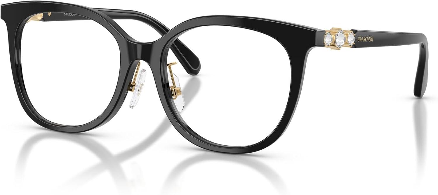 Swarovski Women’s Sk2055f Low Bridge Fit Round Prescription Eyewear Frames(Black/Demo Lens)