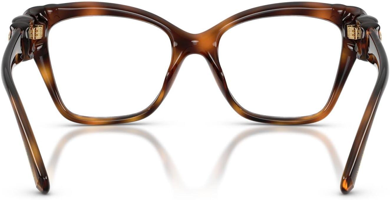 The Swarovski SK2056U eyeglass frames feature a bold cat eye silhouette from the vibrant Dulcis collection. Celebrating Swarovski's artistry and craftsmanship, this playful design is inspired by Dulcis jewelry designed by Creative Director Giovanna Engelbert. The puffy, rounded design and the bold crystal on each temple recall the Dulcis jewels, with shapes characterized by puffy volumes that give a playful and joyful mood, perfect for adding a touch of sparkle to any style. Available in a vibrant array of cat eye frames including rich havana, dark grey, and playful transparent options in green, light blue, and pink that offer joyful and dynamic styling choices. The cat eye shape provides dramatic feminine sophistication and flattering proportions while the Universal Fit construction with narrower bridge and longer, more curved nosepads increases grip on the nose with a reduced curved shape that reduces the space between the frame and your cheekbones, ensuring exceptional comfort and all-day wearability for a wider range of face shapes. Perfect for the discerning individual who values creative design and spirited elegance, these frames represent the intersection of artistic vision and exquisite detailing with premium materials. These versatile frames transition effortlessly from sophisticated occasions to everyday moments. These prescription-ready frames are designed to be fitted with your custom prescription lenses for clear vision. Each pair comes with a protective case and cleaning cloth to preserve your frames and maintain their pristine appearance. Swarovski eyeglass frames sold by authorized sellers, like Amazon.com, are eligible for all manufacturer warranties and guarantees.