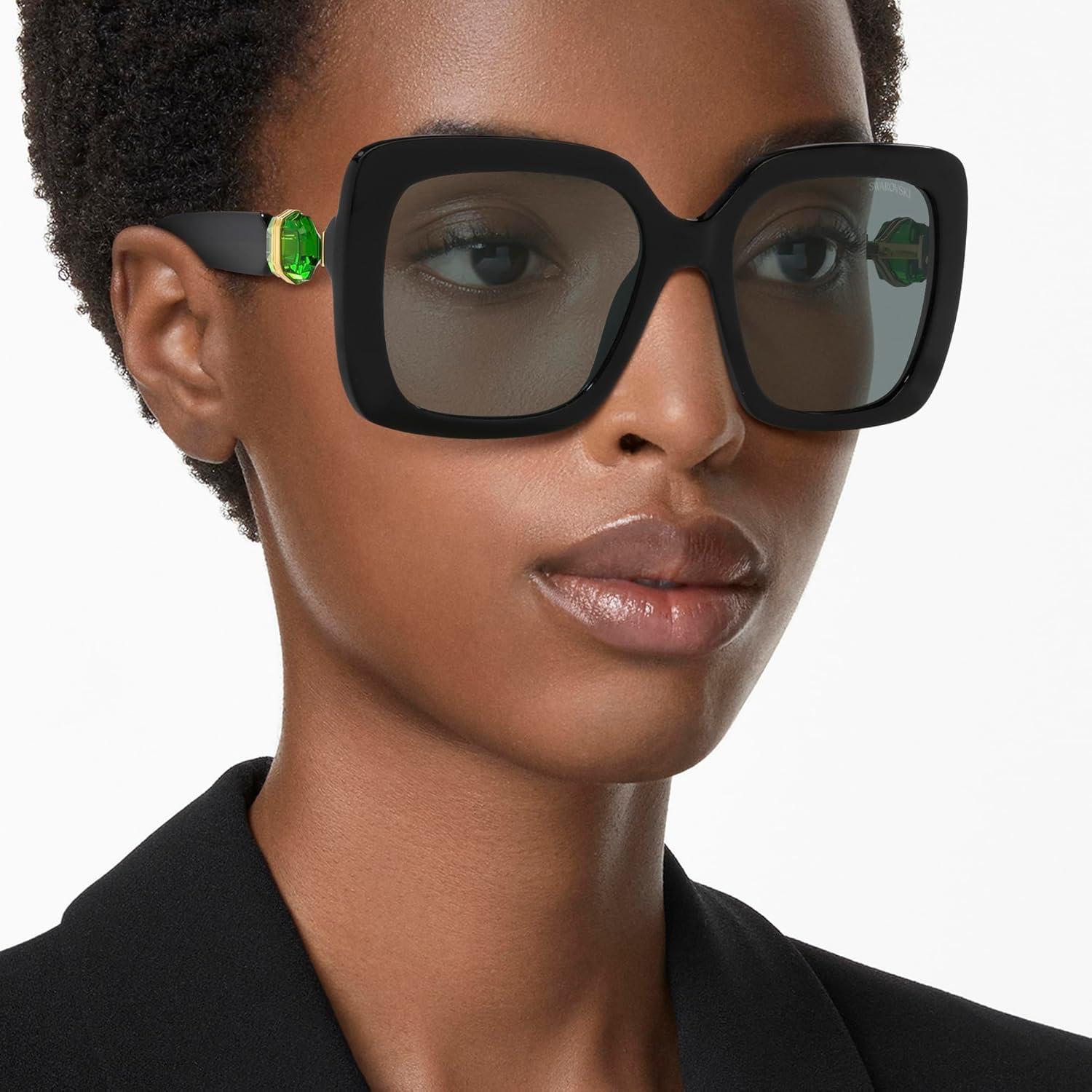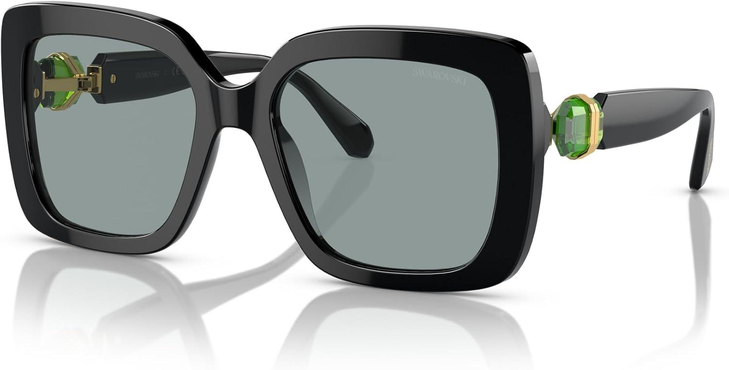 Swarovski Women’s Sk6001 Square Sunglasses(Black/Dark Grey)