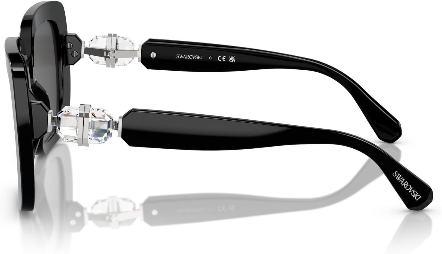 Celebrating Swarovski’s artistry and craftsmanship, the Science of Facets displays a crystal playground and colorful wonderland of precision cuts. A pure and hypnotic focus on full cut crystal temple hinges, the meticulous faceting demonstrates the brands cutting expertise as a unique point of difference. Style-forward details coupled with a striking bold shape, SK6001 are a twist on a wardrobe classic. Available in a variety of classic colors with solid, mirrored or polarized lenses, finished with signature Lucent hinges characterized by a colorful gemstone on each hinge. Swarovski sunglasses sold by authorized sellers, like Amazon.com, are eligible for all manufacturer warranties and guarantees. Click on the Swarovski link above the product title to shop the entire Swarovski sunglass and eyeglass assortment.