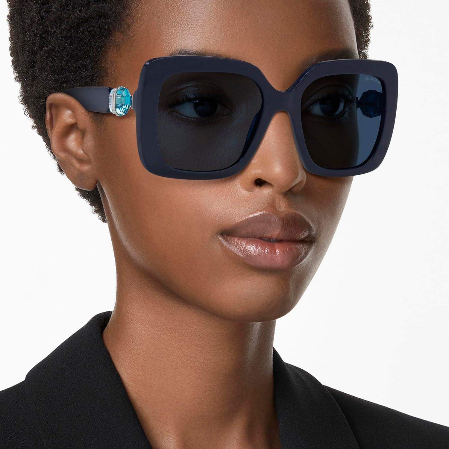 Celebrating Swarovski’s artistry and craftsmanship, the Science of Facets displays a crystal playground and colorful wonderland of precision cuts. A pure and hypnotic focus on full cut crystal temple hinges, the meticulous faceting demonstrates the brands cutting expertise as a unique point of difference. Style-forward details coupled with a striking bold shape, SK6001 are a twist on a wardrobe classic. Available in a variety of classic colors with solid, mirrored or polarized lenses, finished with signature Lucent hinges characterized by a colorful gemstone on each hinge. Swarovski sunglasses sold by authorized sellers, like Amazon.com, are eligible for all manufacturer warranties and guarantees. Click on the Swarovski link above the product title to shop the entire Swarovski sunglass and eyeglass assortment.