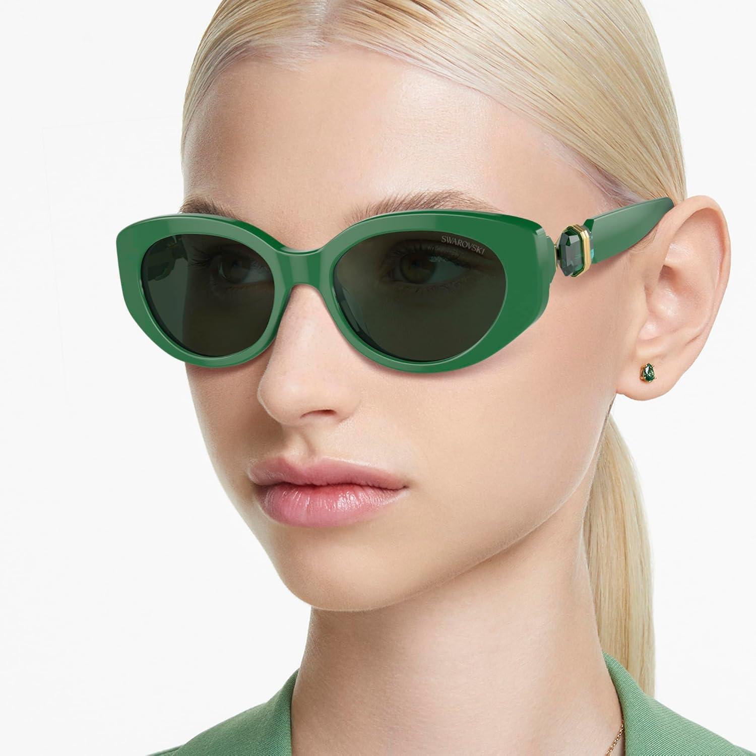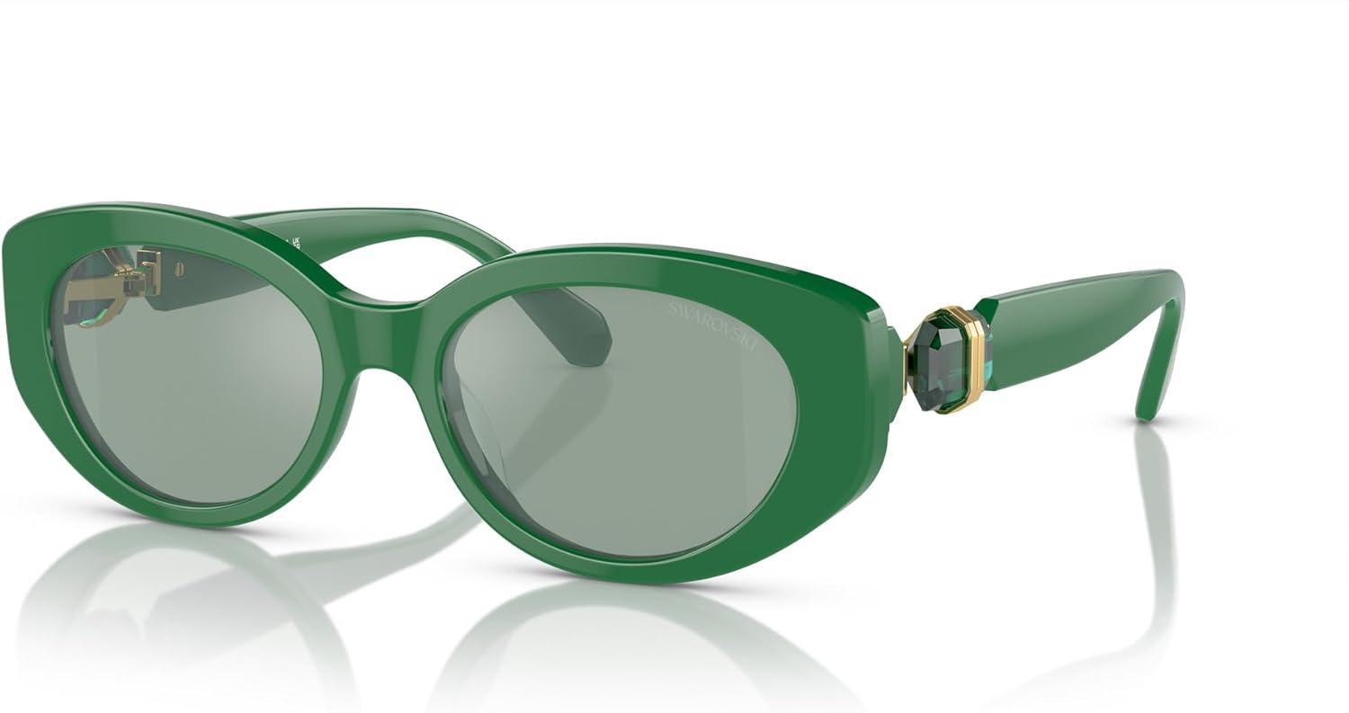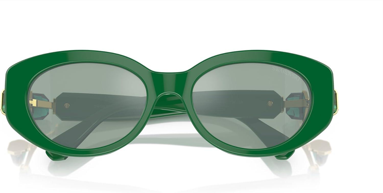 Swarovski womens Sk6002 Oval Sunglasses(Dark Green/Azure Internal Mirrored Silver)