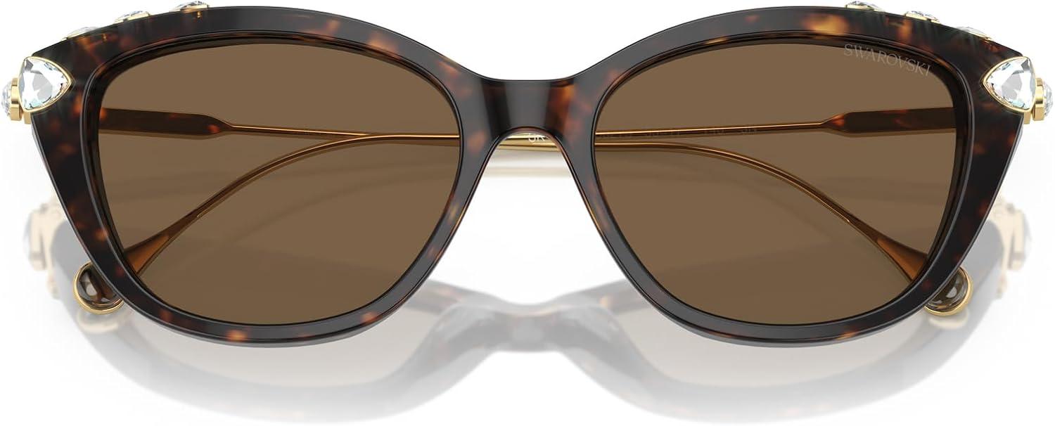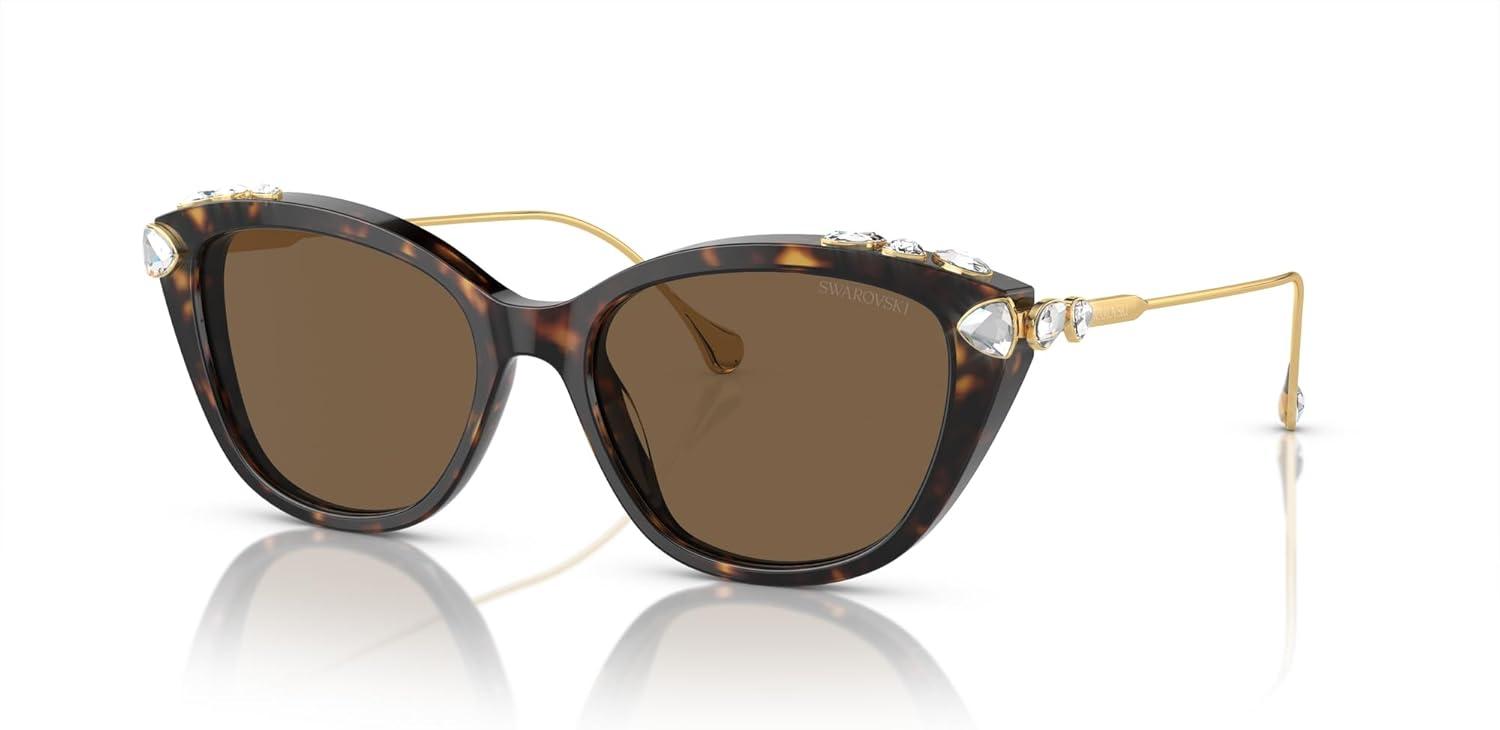 Swarovski Women’s Sk6010 Cat Eye Sunglasses(Havana/Dark Brown)