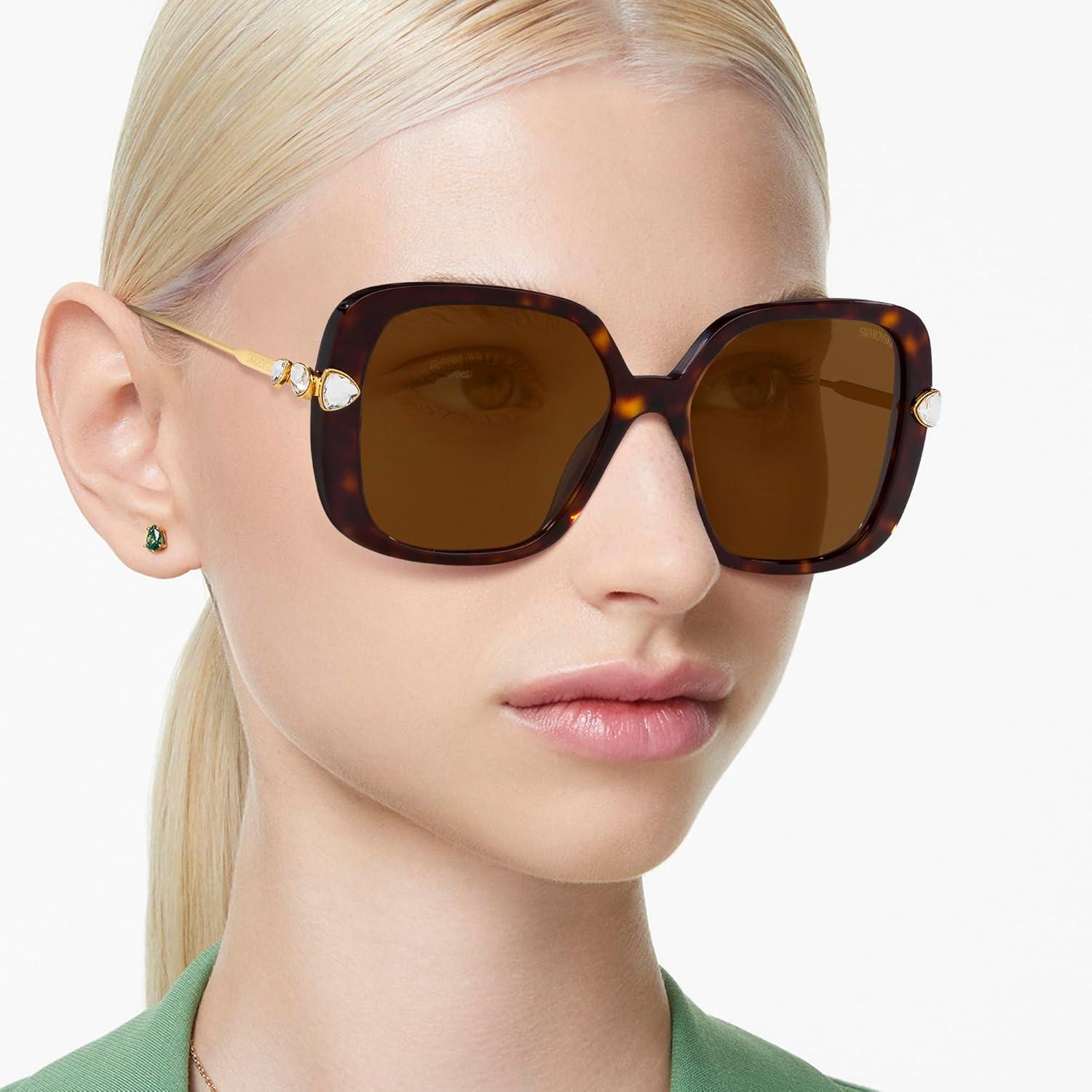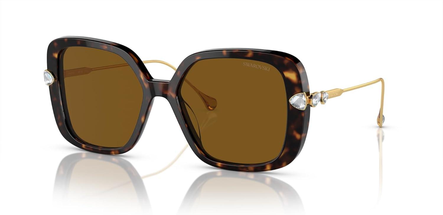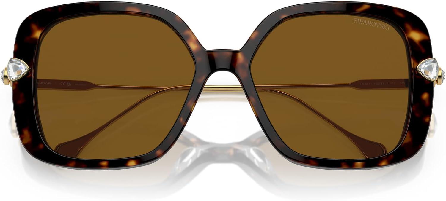 Swarovski womens Sk6011 Square Sunglasses(Havana/Polarized Brown)