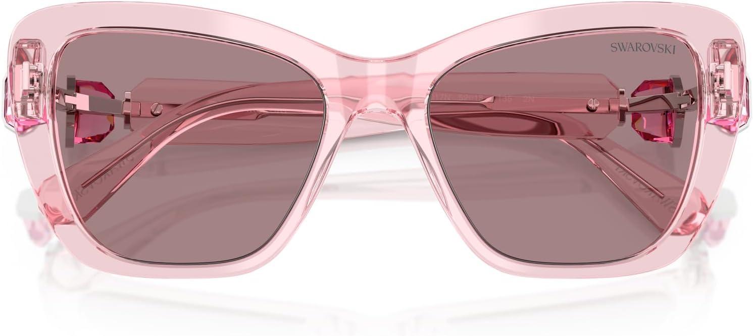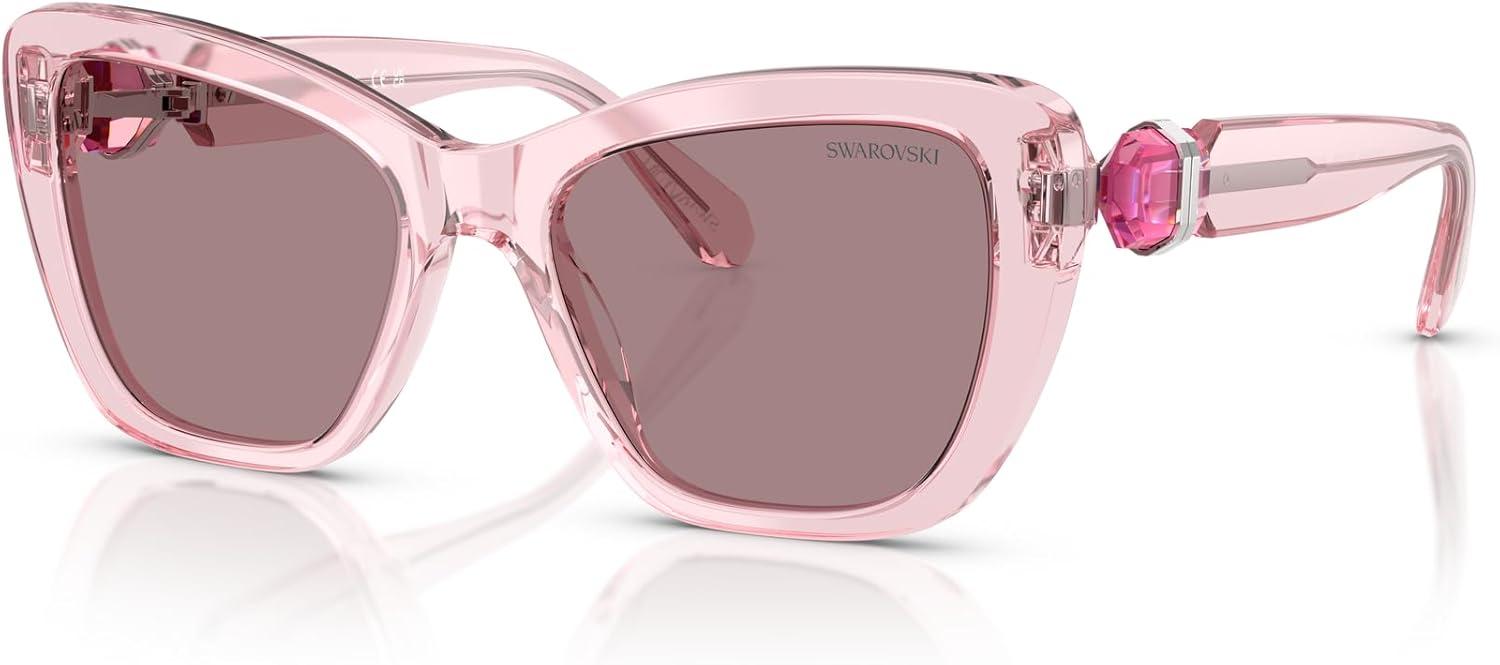 Swarovski Women’s Sk6018 Butterfly Sunglasses(Transparent Pink/Light Purple Brown)