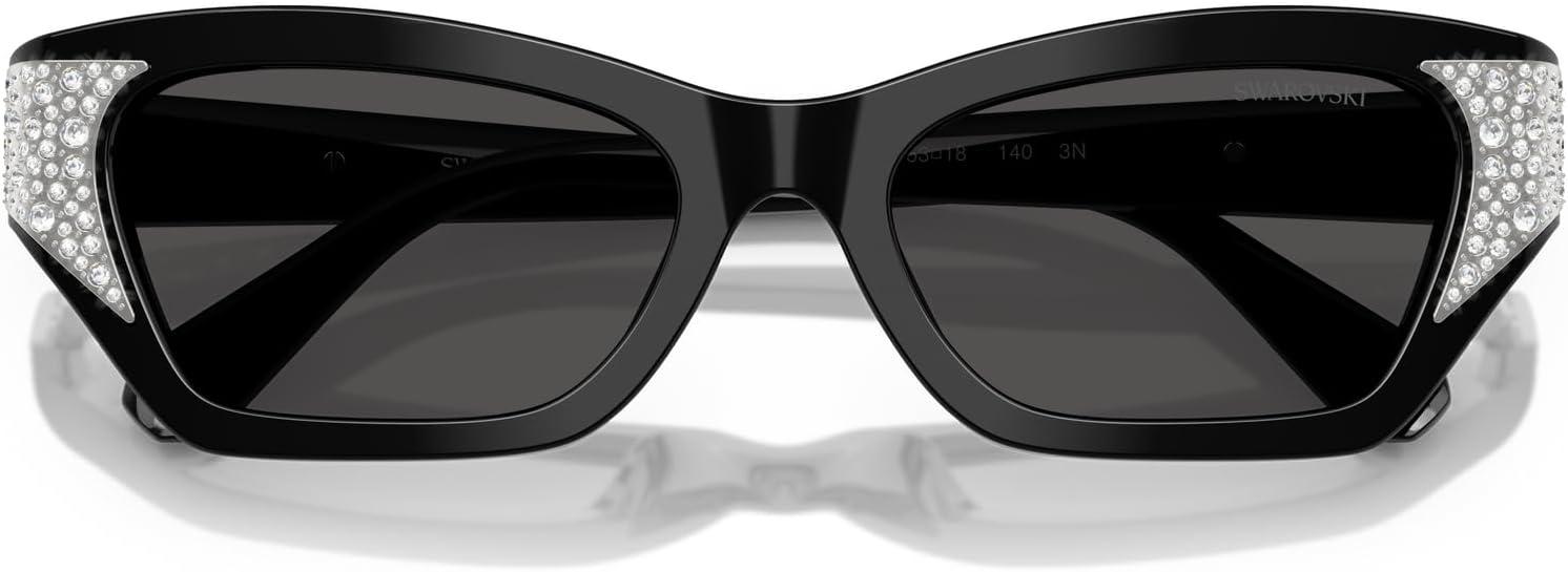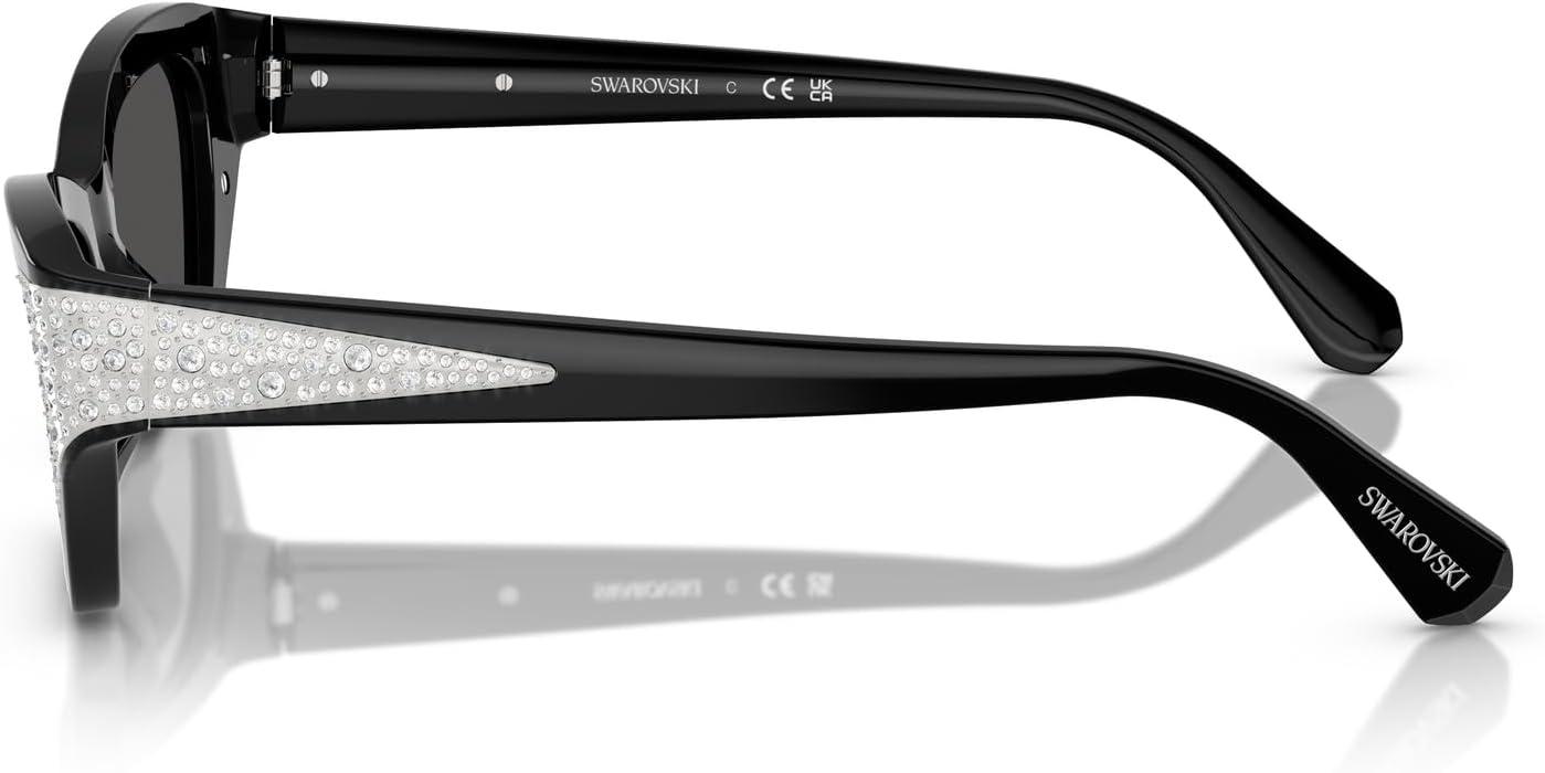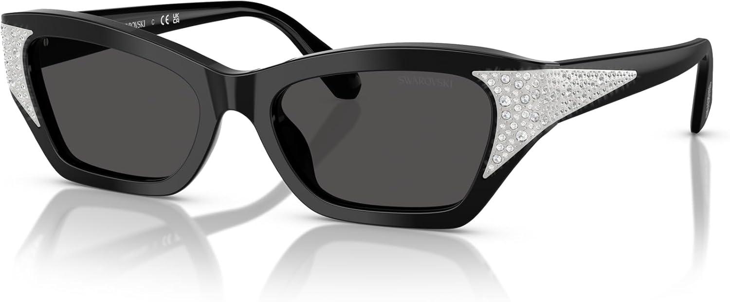 Swarovski womens Sk6029 Cat Eye Sunglasses(Black/Dark Grey)