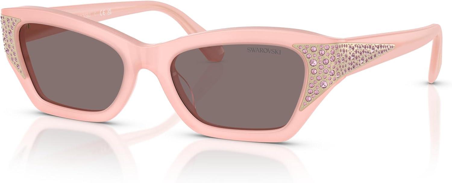 Swarovski womens Sk6029 Cat Eye Sunglasses(Solid White/Light Purple Brown)
