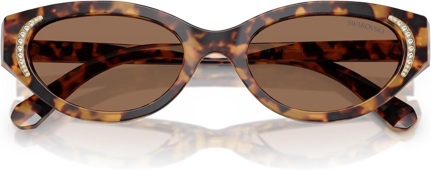 Swarovski womens Sk6030 Round Sunglasses(Havana Medio/Dark Brown)