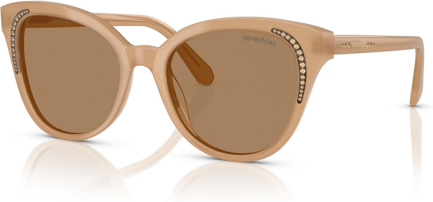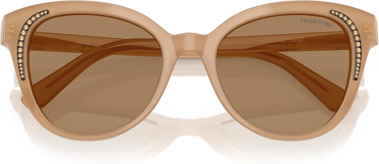 Swarovski Women’s Sk6031 Butterfly Sunglasses(Milky Beige/Transition Clear to Brown)