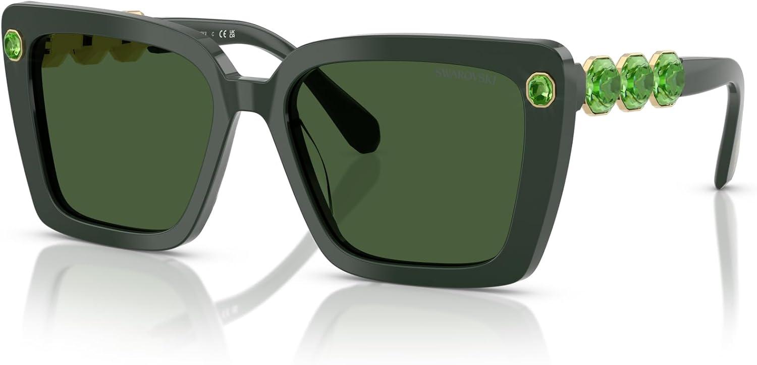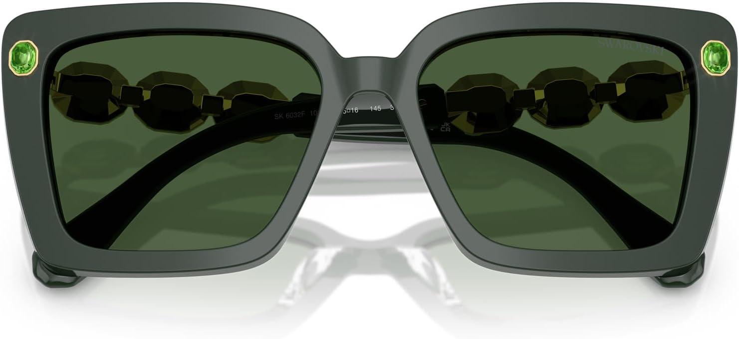 Swarovski womens Sk6032f Low Bridge Fit Square Sunglasses(Green/Dark Green)