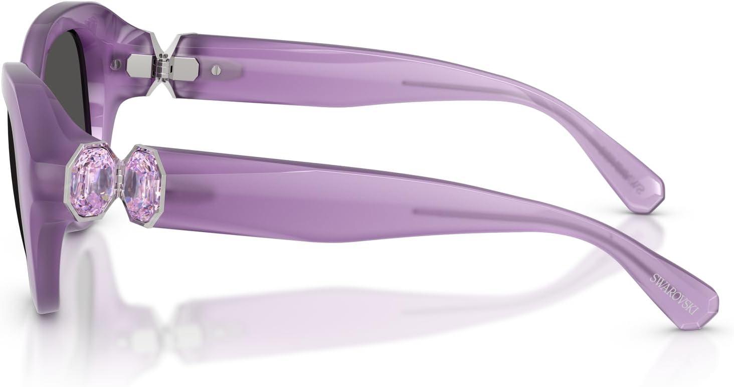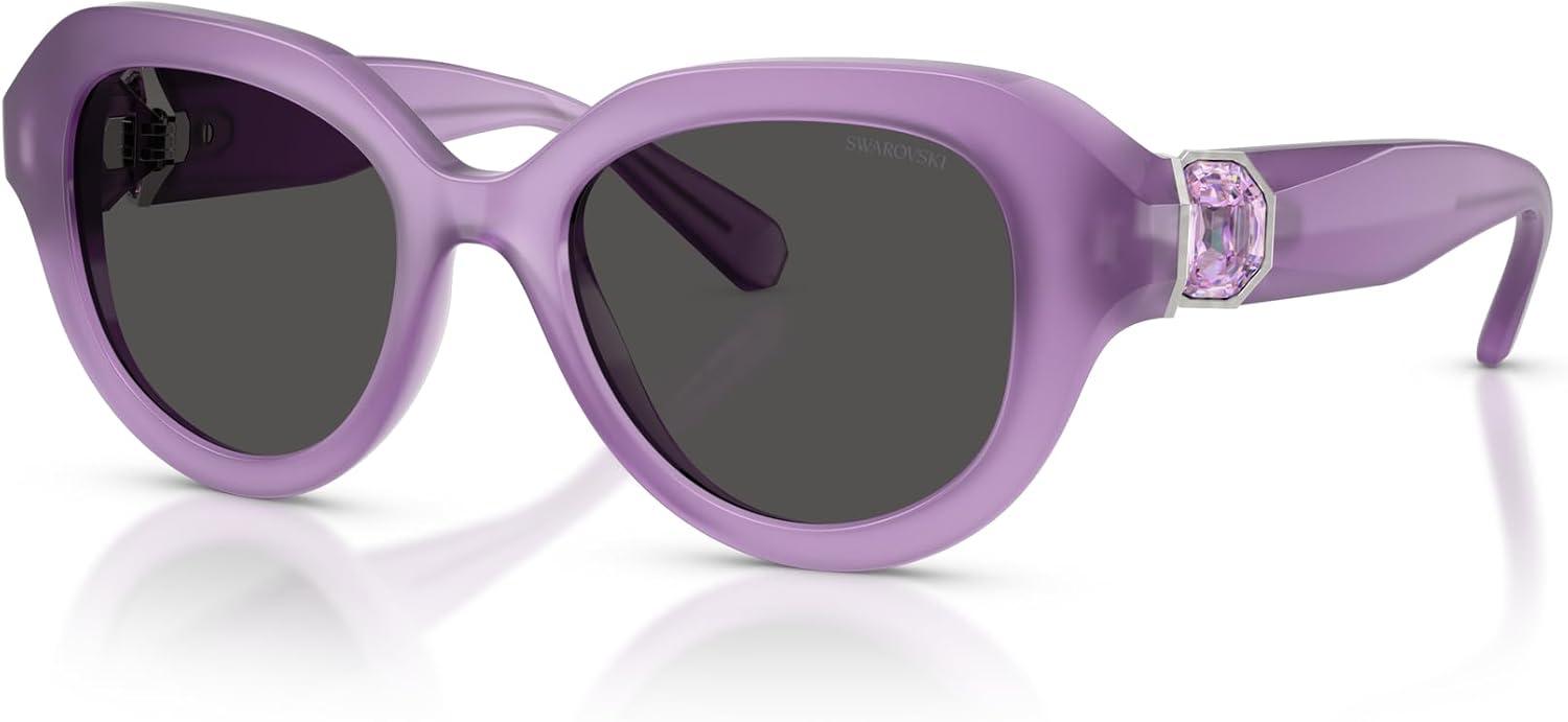 Swarovski womens Sk6037 Round Sunglasses(Milky Lilac/Dark Grey)