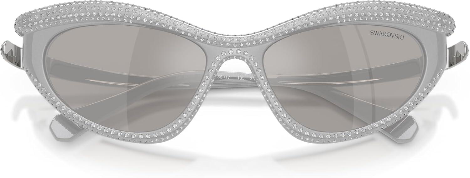 Swarovski womens Sk6038 Cat Eye Sunglasses(Silver/Light Grey Mirrored Silver)