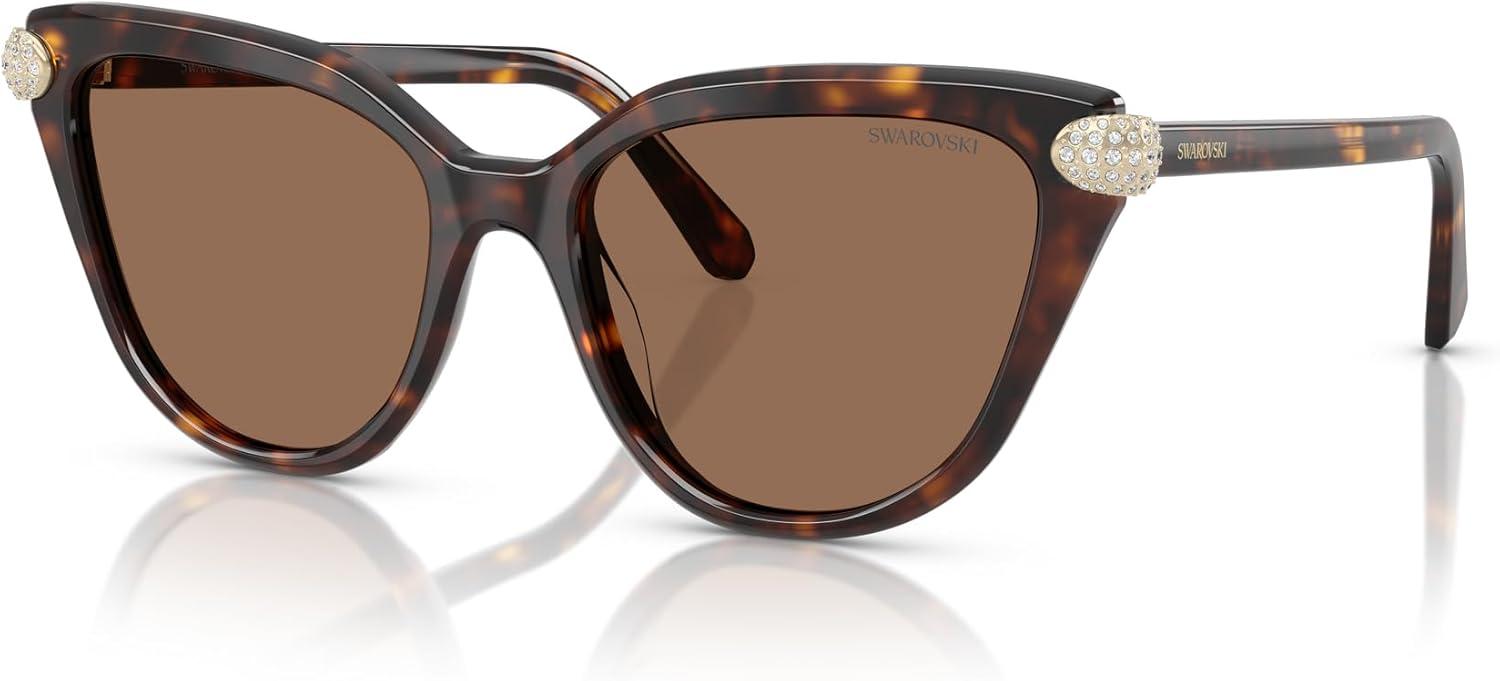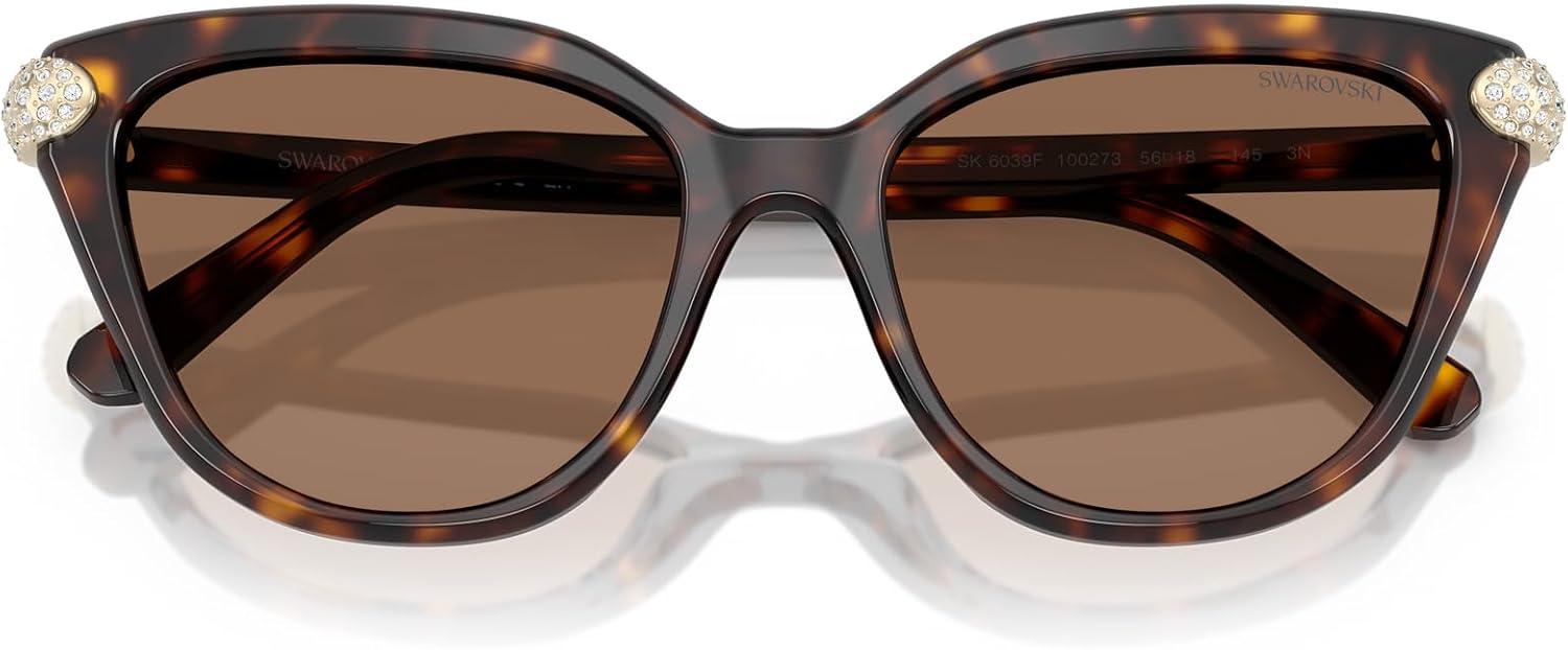 Swarovski womens Sk6039f Low Bridge Fit Cat Eye Sunglasses(Havana/Dark Brown)