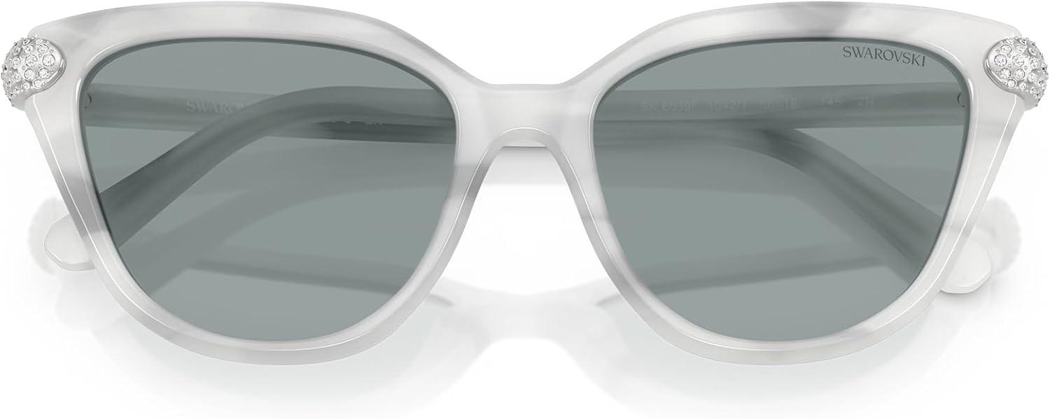 Swarovski womens Sk6039f Low Bridge Fit Cat Eye Sunglasses(White Havana/Dark Grey)