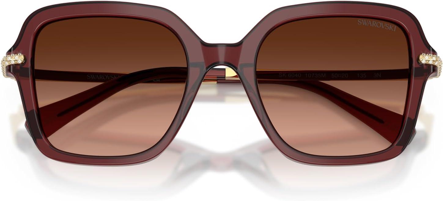 Swarovski Women’s Sk6040 Square Sunglasses(Transparent Burgundy/Pink Gradient Grey)