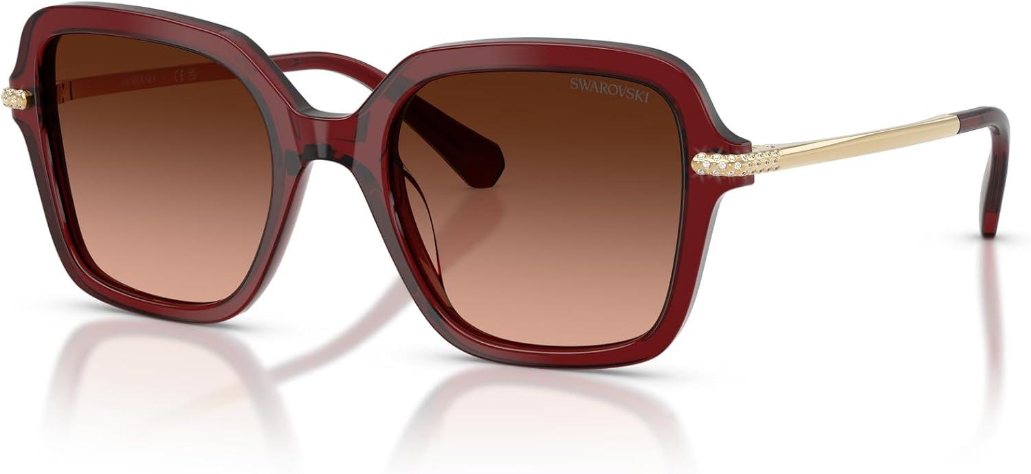 Swarovski womens Sk6040f Low Bridge Fit Square Sunglasses(Transparent Burgundy/Pink Gradient Grey)