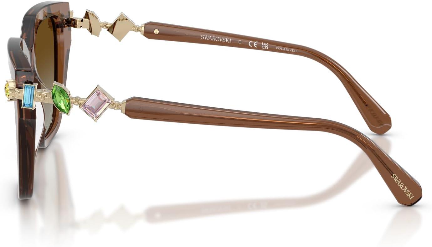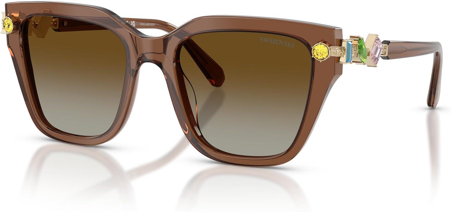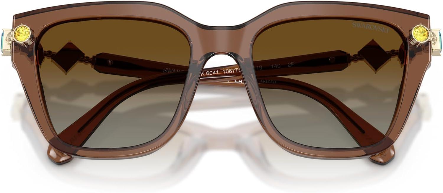 Swarovski Women’s Sk6041 Square Sunglasses(Transparent Brown/Gradient Brown Polarized)