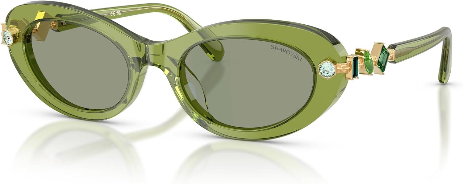 Swarovski womens Sk6042 Oval Sunglasses(Transparent Green/Green)