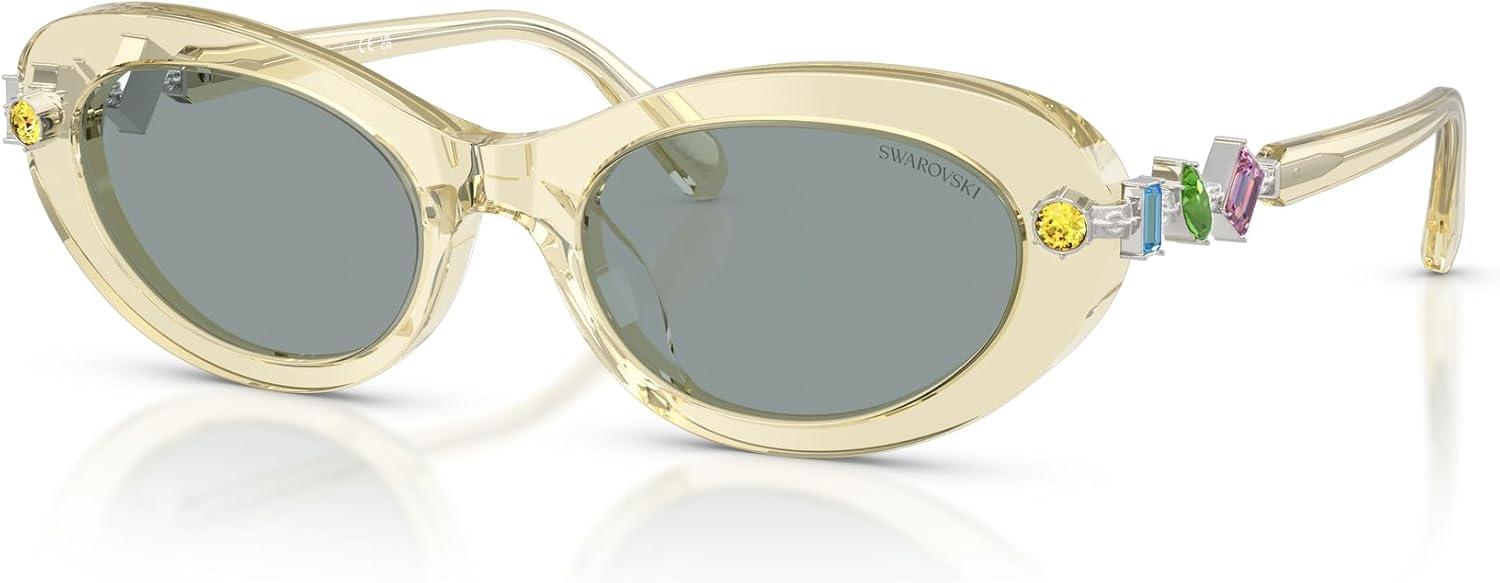 Swarovski womens Sk6042 Oval Sunglasses(Transparent Yellow/Grey)