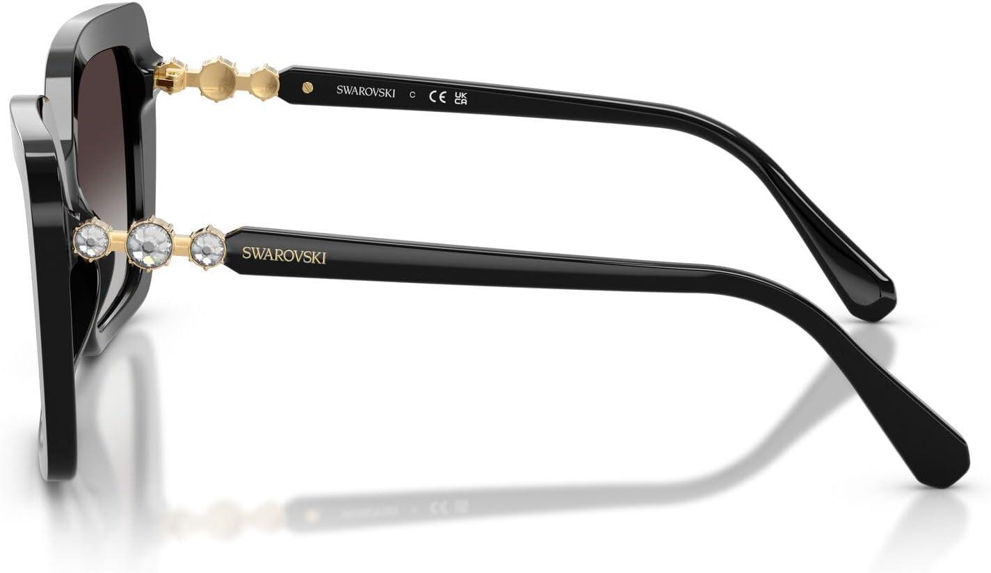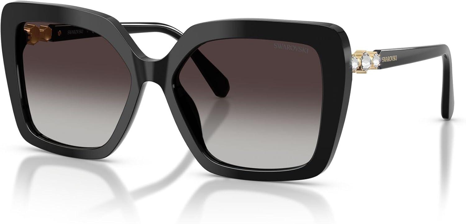 Swarovski Women’s Sk6049f Low Bridge Fit Sunglasses(Black/Gradient Grey)